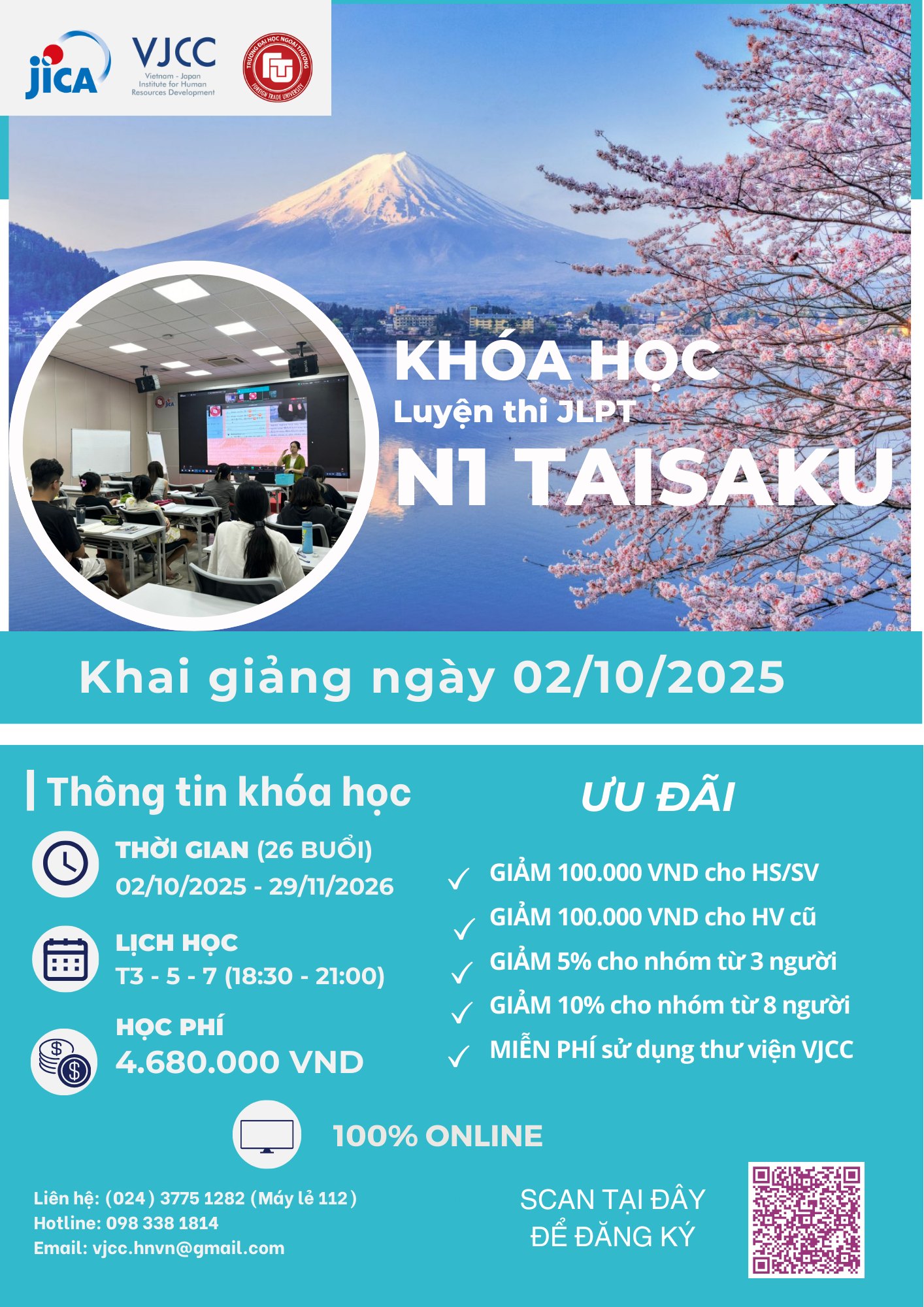 KHÓA HỌC LUYỆN THI NĂNG LỰC TIẾNG NHẬT JLPT N1 TAISAKU