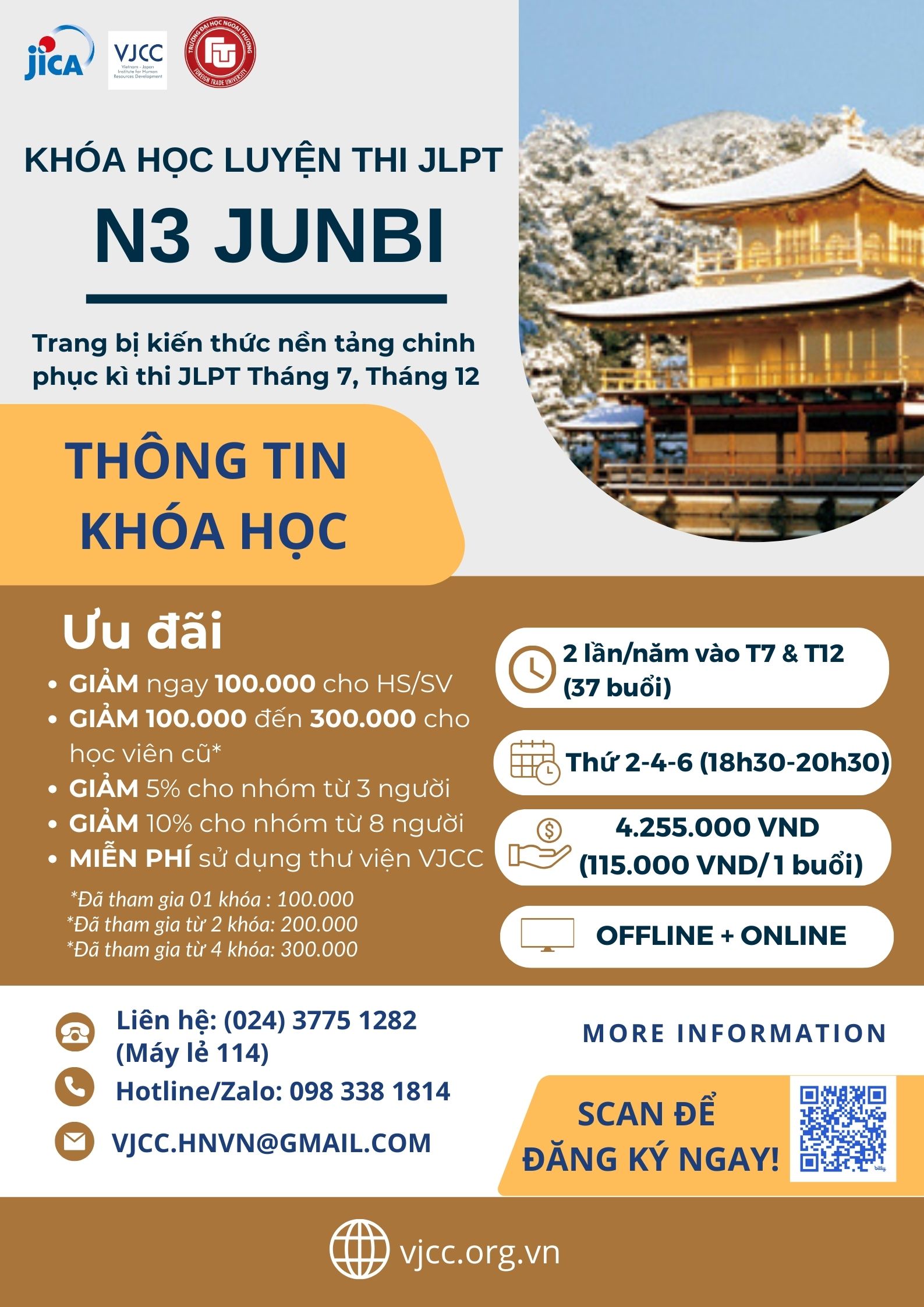 Nhằm trang bị từ đầu và đầy đủ kiến thức cần thiết cho các “tân binh” cho kỳ thi JLPT N3, Viện VJCC xin trân trọng giới thiệu: