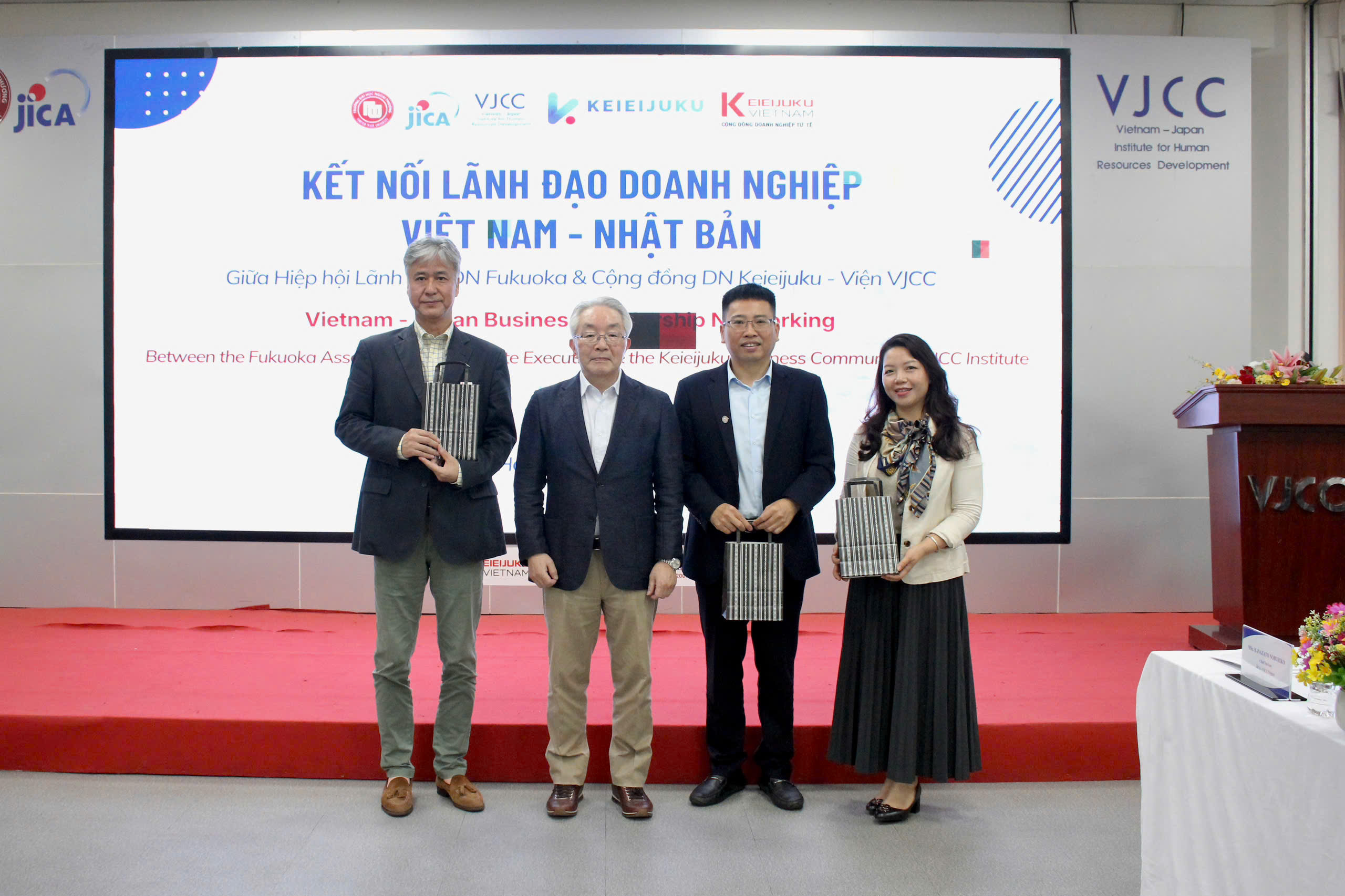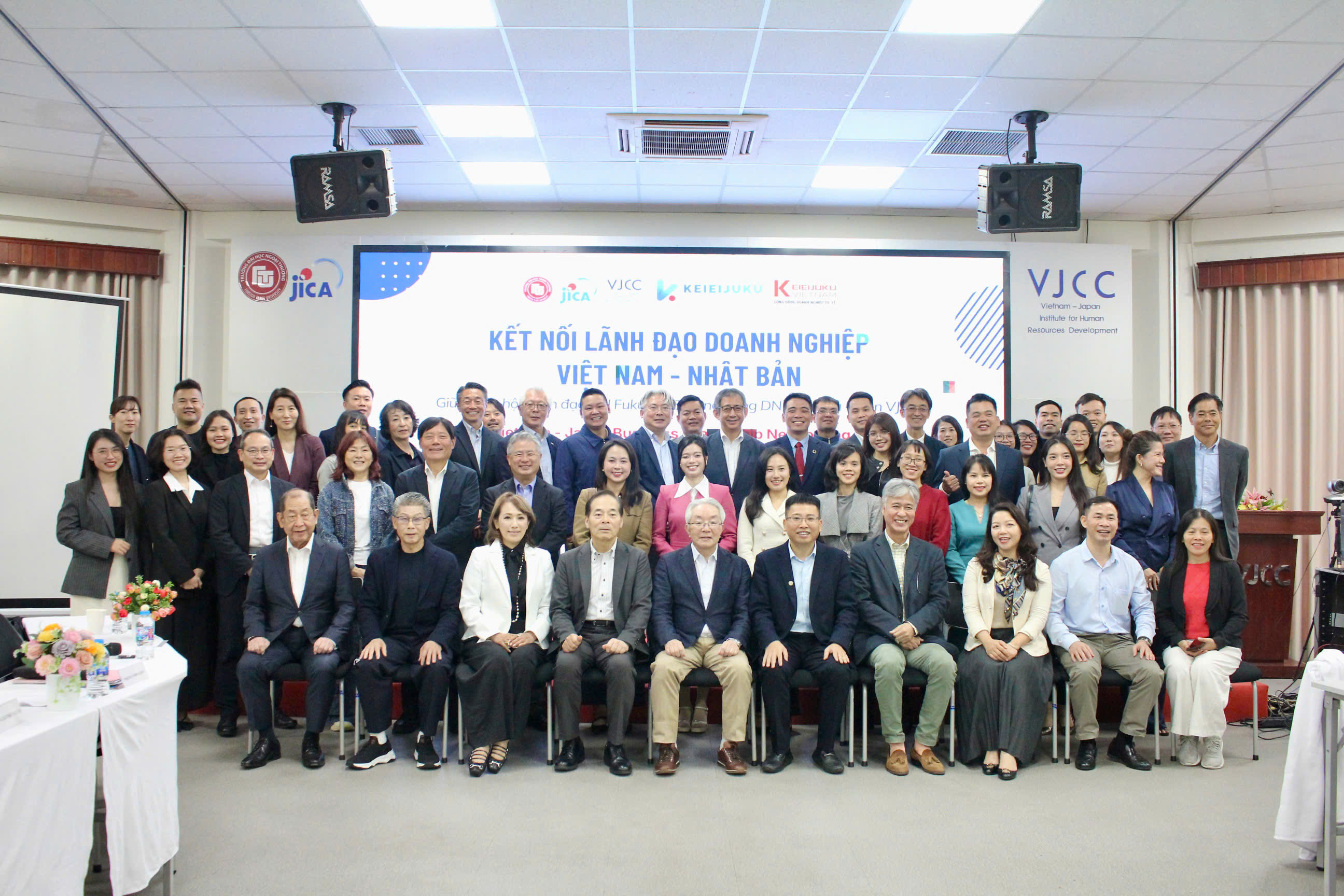 Sáng ngày 06/02/2026, Viện Phát triển Nguồn nhân lực Việt Nam – Nhật Bản (VJCC) đã phối hợp cùng Hiệp hội Lãnh đạo Doanh nghiệp Fukuoka và Cộng đồng Keieijuku Việt Nam tổ chức thành công sự kiện “Vietnam – Japan Business Networking: Kết nối lãnh đạo doanh nghiệp Việt Nam – Nhật Bản”. Sự kiện thu hút sự tham gia của 20 lãnh đạo doanh nghiệp đến từ tỉnh Fukuoka (Nhật Bản) và gần 40 doanh nghiệp Việt Nam.