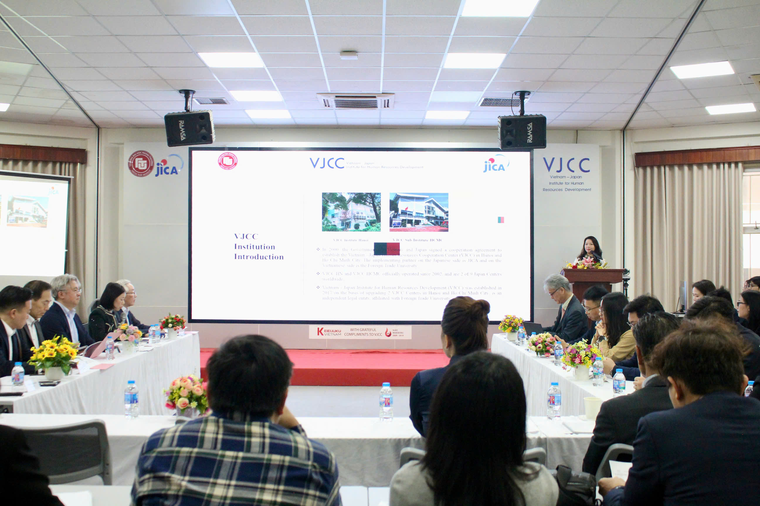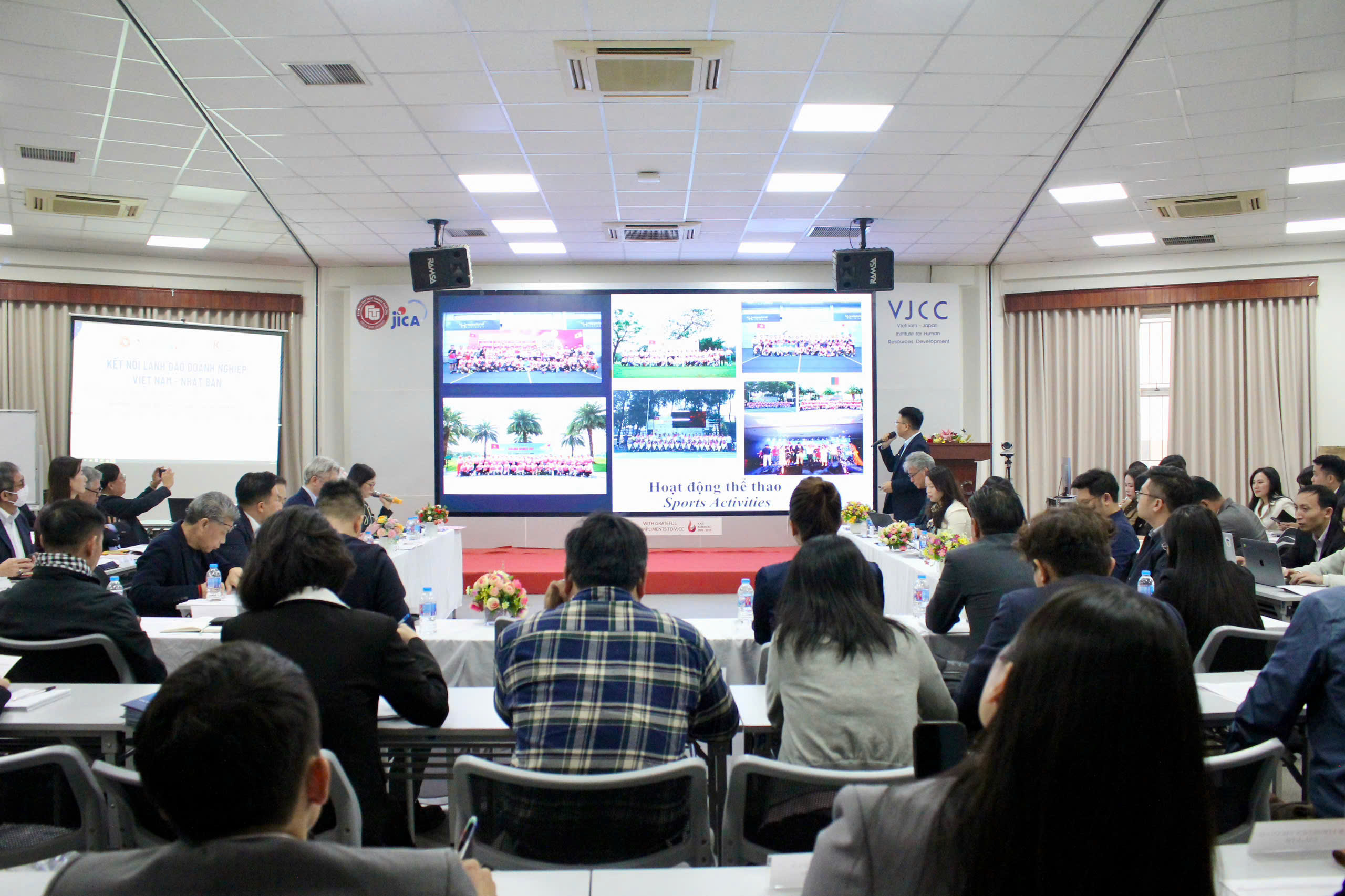 Phát biểu khai mạc sự kiện, ThS Trần Thị Kiều Minh – Phó Viện trưởng Viện VJCC đã giới thiệu tổng quan về vai trò và sứ mệnh của VJCC, nhấn mạnh ba trụ cột chính trong hoạt động của Viện gồm: đào tạo kinh doanh và phát triển nguồn nhân lực trong doanh nghiệp, đào tạo bậc cử nhân và thúc đẩy kết nối doanh nghiệp Việt Nam – Nhật Bản. Bà bày tỏ kỳ vọng sự kiện sẽ mở ra nhiều tiền đề hợp tác tích cực, thiết thực và lâu dài giữa doanh nghiệp hai bên.