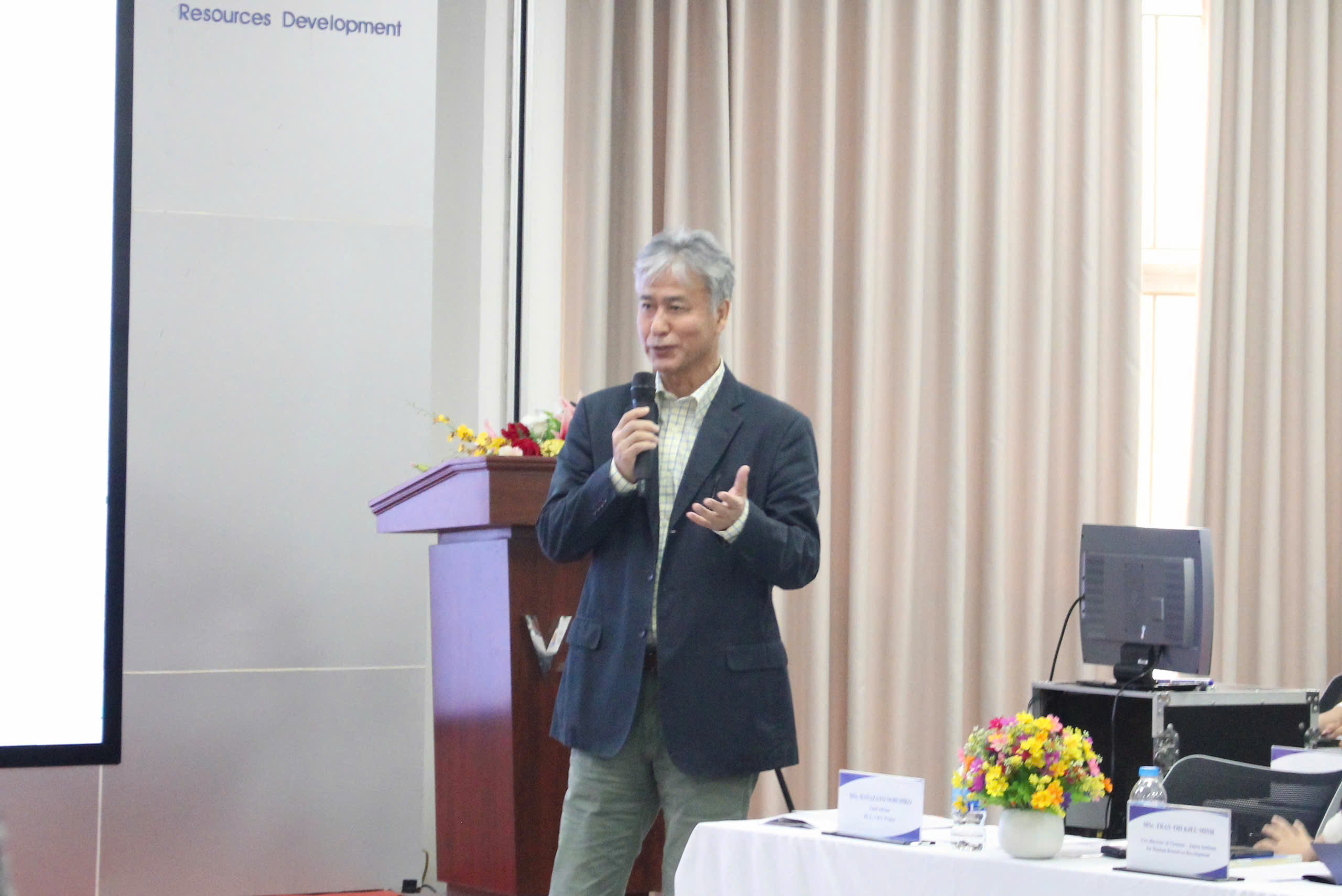 Ảnh: Ông Hanazato Nobuhiko, Cố vấn trưởng dự án VJCC, đại diện JICA Việt Nam phát biểu bế mạc sự kiện