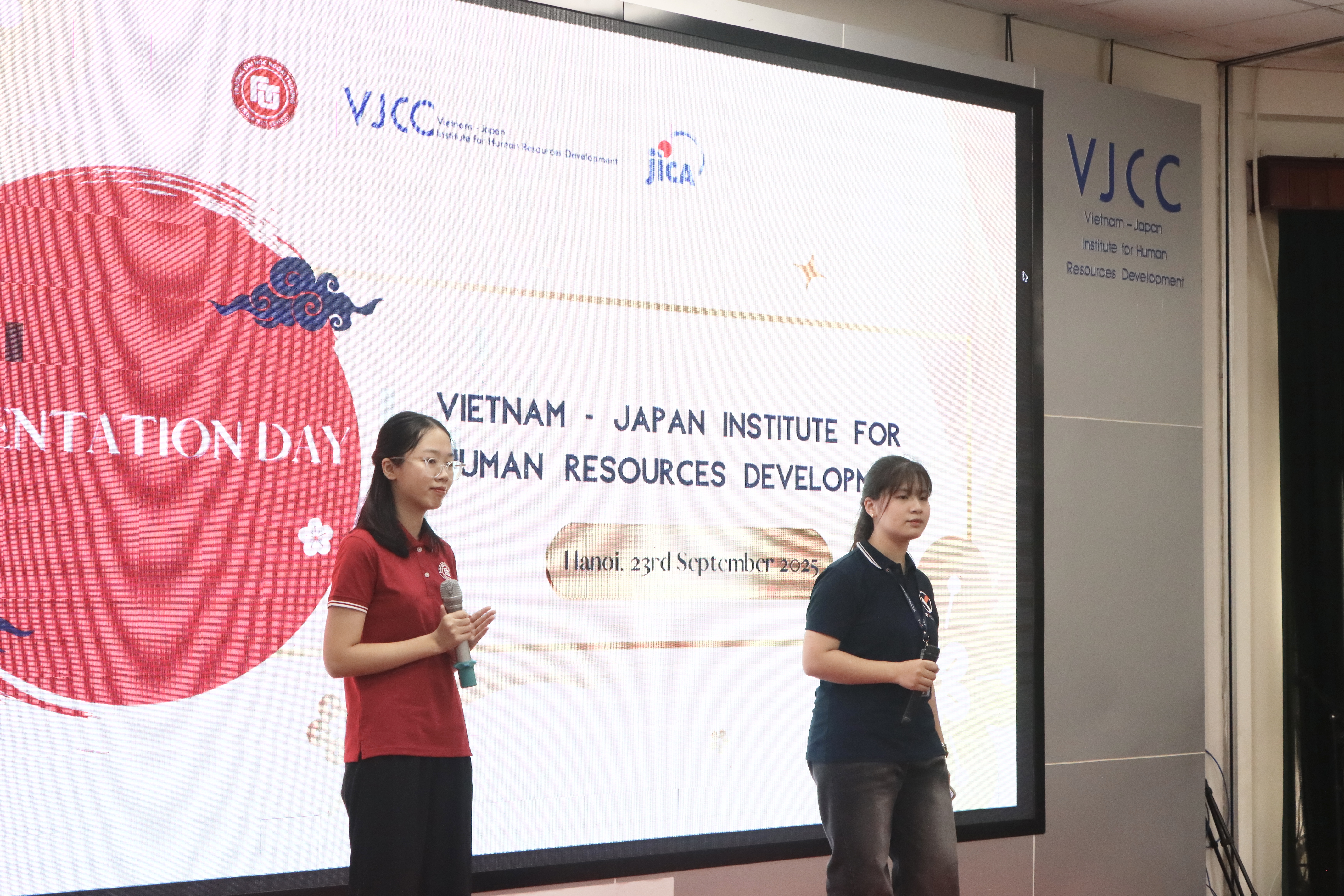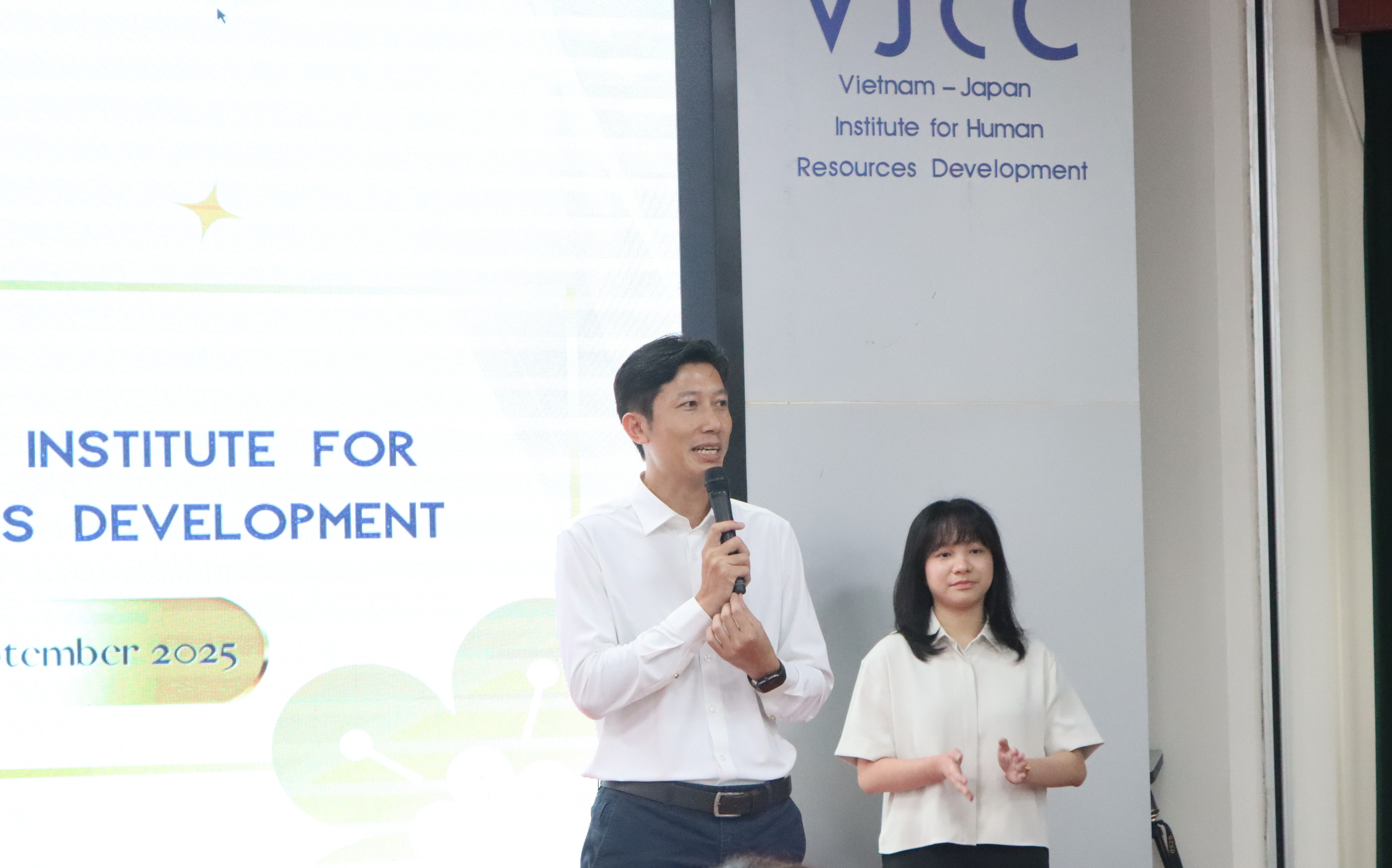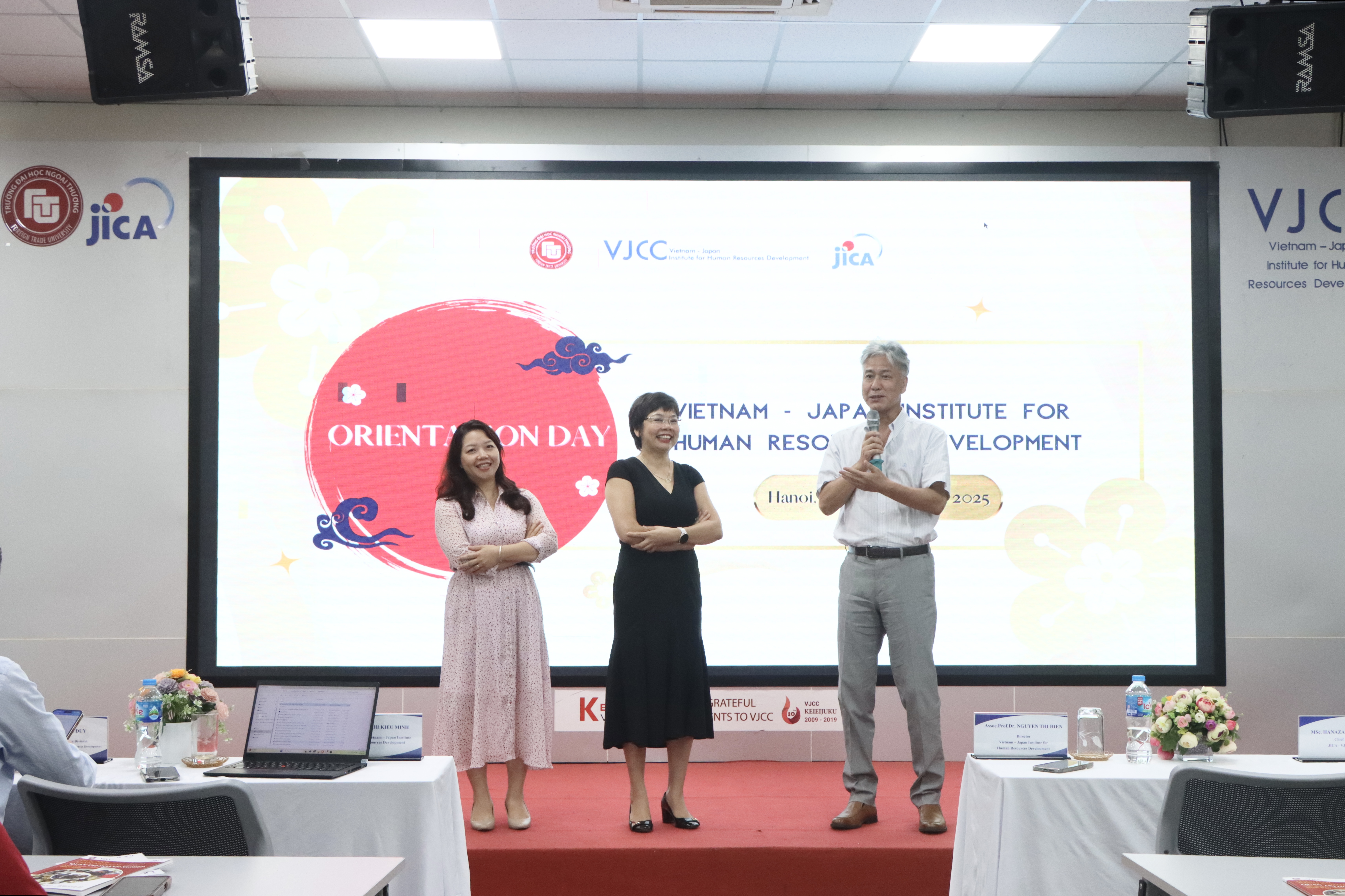 Ngày 23/09/2025, Viện Phát triển nguồn nhân lực Việt Nam – Nhật Bản (VJCC) tổ chức Buổi định hướng đầu khóa cho tân sinh viên khóa 64 – Chương trình Cử nhân Kinh doanh quốc tế theo mô hình tiên tiến Nhật Bản (JIB) và Kinh doanh số (DB).