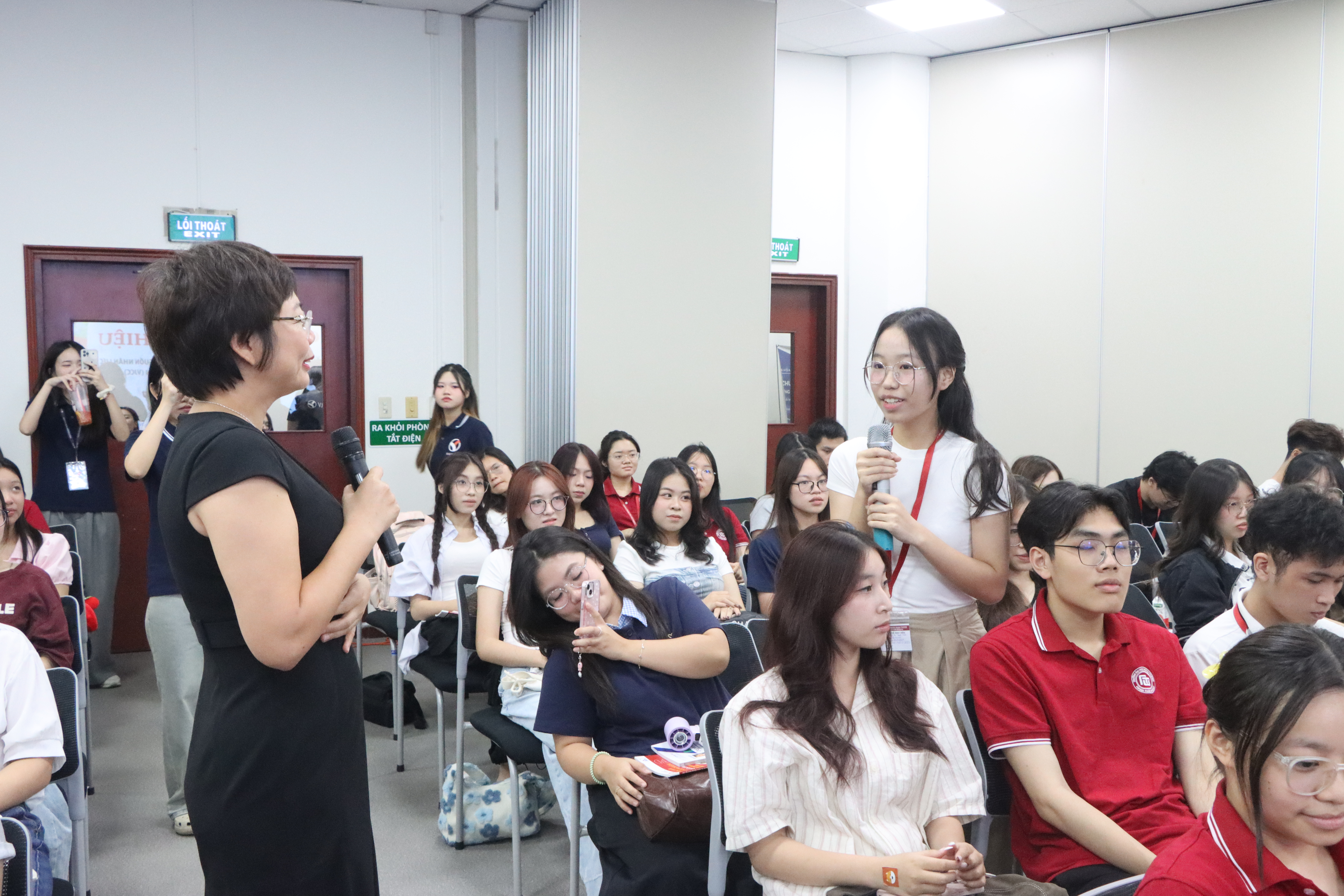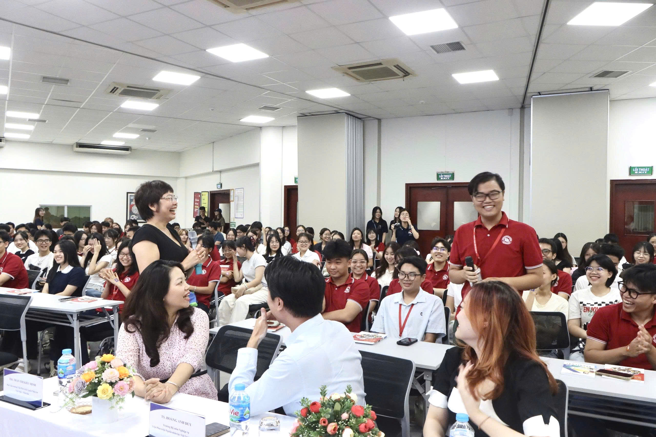 PGS, TS Nguyễn Thị Hiền - Viện trưởng Viện VJCC giao lưu, chúc mừng các tân sinh viên K64 Chương trình JIB và DB