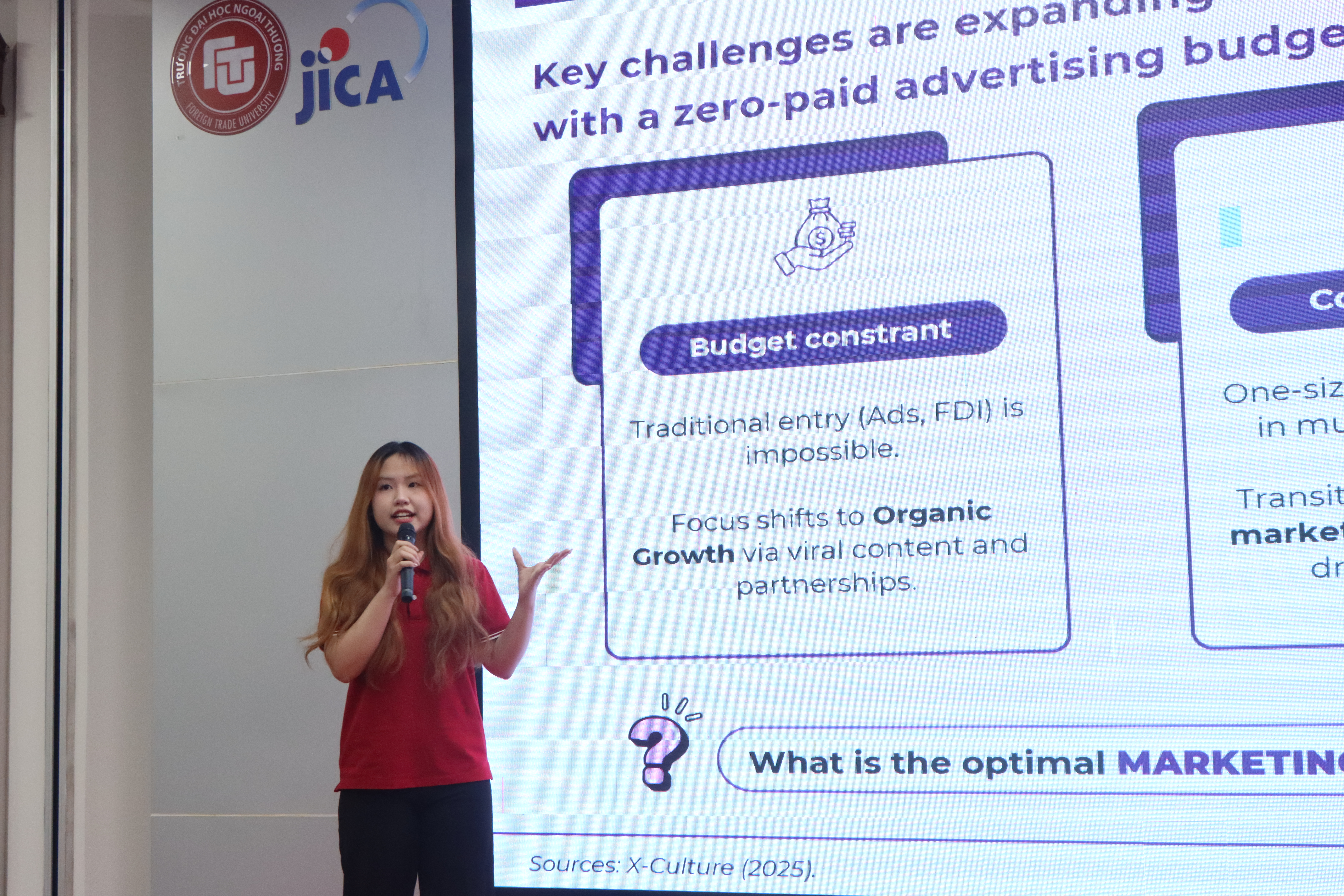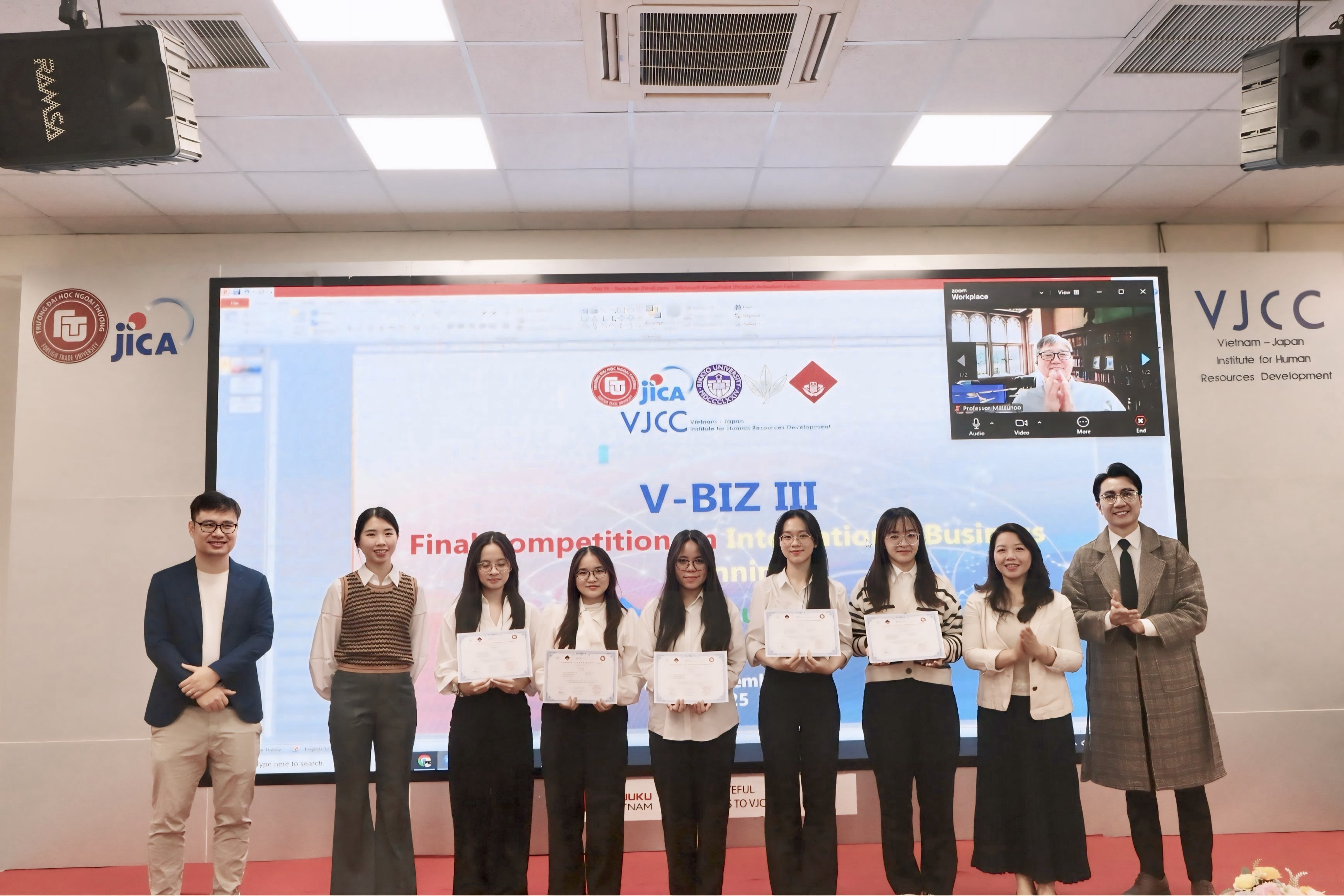 Sáng ngày 26 tháng 12 năm 2025, Viện VJCC – Trường Đại học Ngoại thương tổ chức thành công Vòng Chung kết Cuộc thi "International Business Planning" – học phần VBIZ III cho sinh viên K61 Chương trình Cử nhân Kinh doanh quốc tế theo mô hình tiên tiến Nhật Bản (JIB). Sự kiện diễn ra trong một không gian học tập đa văn hóa đầy sôi động, đánh dấu sự kết thúc một hành trình học tập đầy thử thách nhưng ý nghĩa của sinh viên K61 JIB trong học kỳ vừa qua.