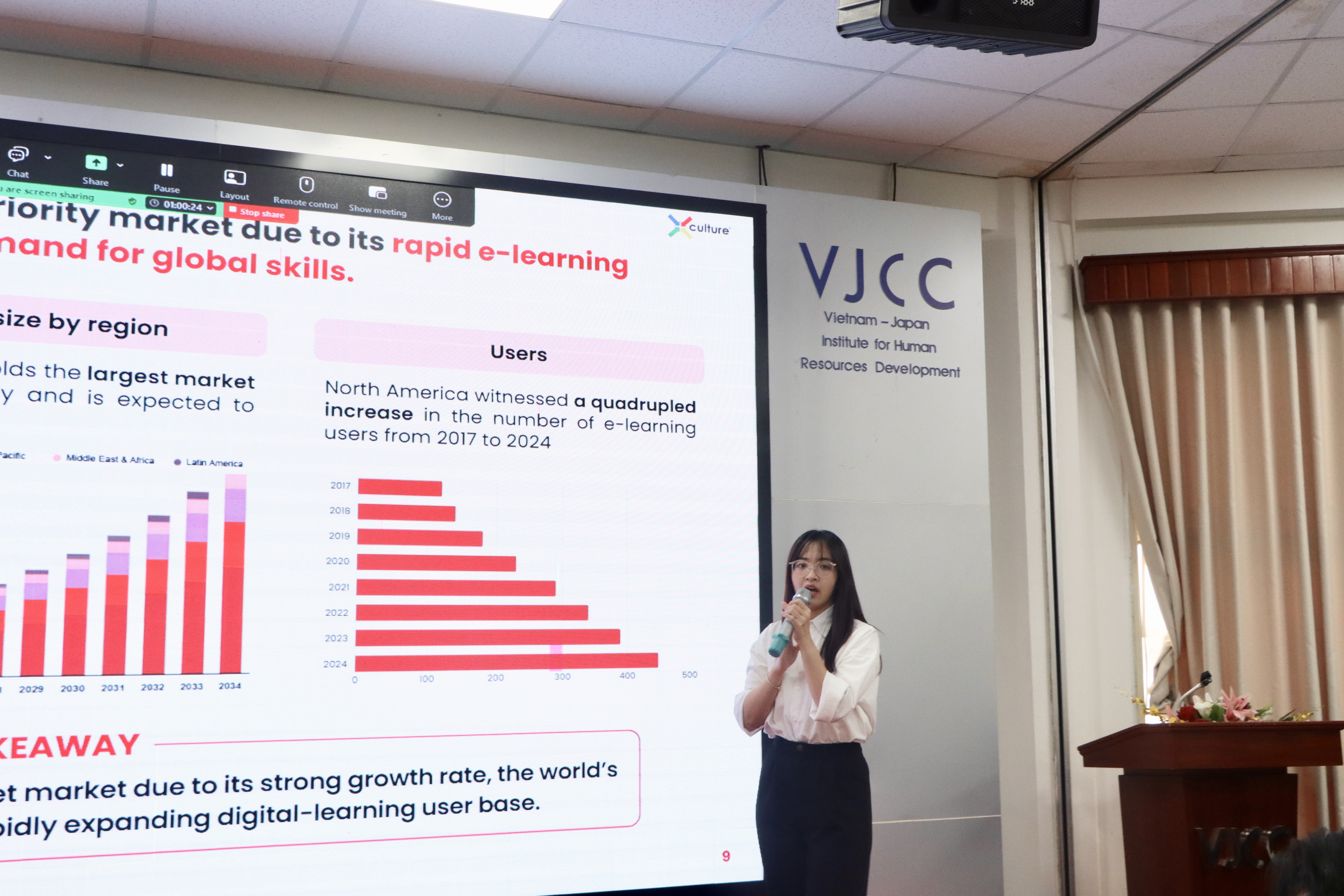 Thông qua nền tảng X-Culture, sinh viên K61 JIB đã hợp tác cùng sinh viên từ nhiều quốc gia để phân tích và đưa ra giải pháp cho các bài toán kinh doanh thực tế. Mặc dù việc điều phối dự án và dung hòa quan điểm đa dạng trong các nhóm đa văn hóa đặt ra không ít khó khăn, chính qua đó, sinh viên đã trau dồi khả năng giao tiếp, quản lý nhóm và giải quyết vấn đề một cách linh hoạt. Vòng chung kết hội tụ 4 đội thi với những dự án ấn tượng: phát triển X-Culture (nền tảng giáo dục xuyên quốc gia), chiến lược marketing cho Linguado (ứng dụng giao lưu ngôn ngữ), tư vấn mở rộng cho Finnish Schools International (mô hình giáo dục từ Phần Lan), và kế hoạch toàn cầu hóa LaserVet (thiết bị công nghệ laser cho thú y của Ý).