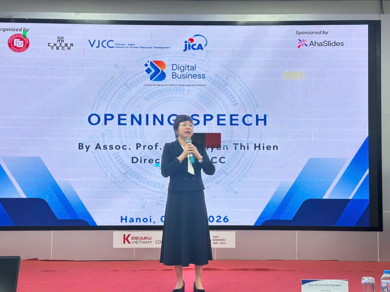 Phát biểu khai mạc chương trình, PGS.TS Nguyễn Thị Hiền – Viện trưởng Viện VJCC nhấn mạnh vai trò đặc biệt của DBIZ2 trong cấu trúc đào tạo kinh doanh số. Nếu DBIZ1 giúp sinh viên hình thành và kiểm chứng ý tưởng kinh doanh, thì DBIZ2 là giai đoạn sinh viên phải “biến ý tưởng thành hệ thống”, thông qua việc phân tích nghiệp vụ, thiết kế kiến trúc, luồng dữ liệu và các thành phần cốt lõi của giải pháp số. Đây cũng là bước chuyển quan trọng từ tư duy ý tưởng sang tư duy triển khai.