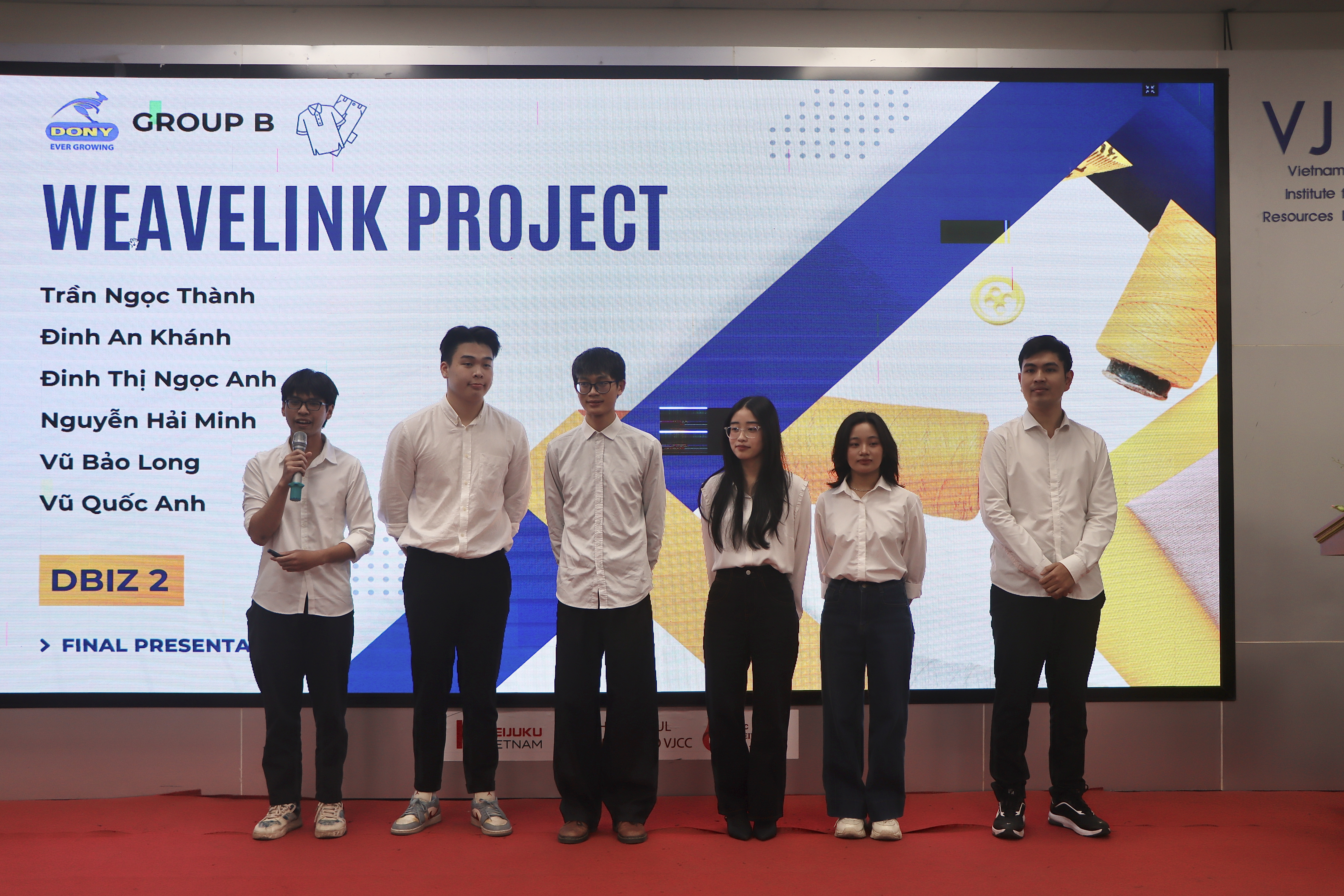 Tại vòng chung kết, bốn nhóm sinh viên đã trình bày các phương án thiết kế hệ thống kinh doanh số cho những bối cảnh và bài toán khác nhau. Group A giới thiệu dự án Maternity RPM – Giải pháp theo dõi thai sản từ xa dành cho Bệnh viện Thu Cúc, tập trung vào thiết kế hệ thống chăm sóc sức khỏe số và luồng dữ liệu y tế. Group B trình bày Weavelink – Centralized B2B Ordering & Production Management, một hệ thống quản lý đặt hàng và sản xuất tập trung cho doanh nghiệp B2B. Group D mang đến dự án Hanoi Museum – Website tương tác dành cho Bảo tàng Hà Nội, với trọng tâm là trải nghiệm người dùng và thiết kế nội dung số. Group F giới thiệu Hanoigo! – Gamified journey to explore Hanoi Heritages, một nền tảng khám phá di sản Hà Nội thông qua các yếu tố trò chơi hóa và tương tác số.