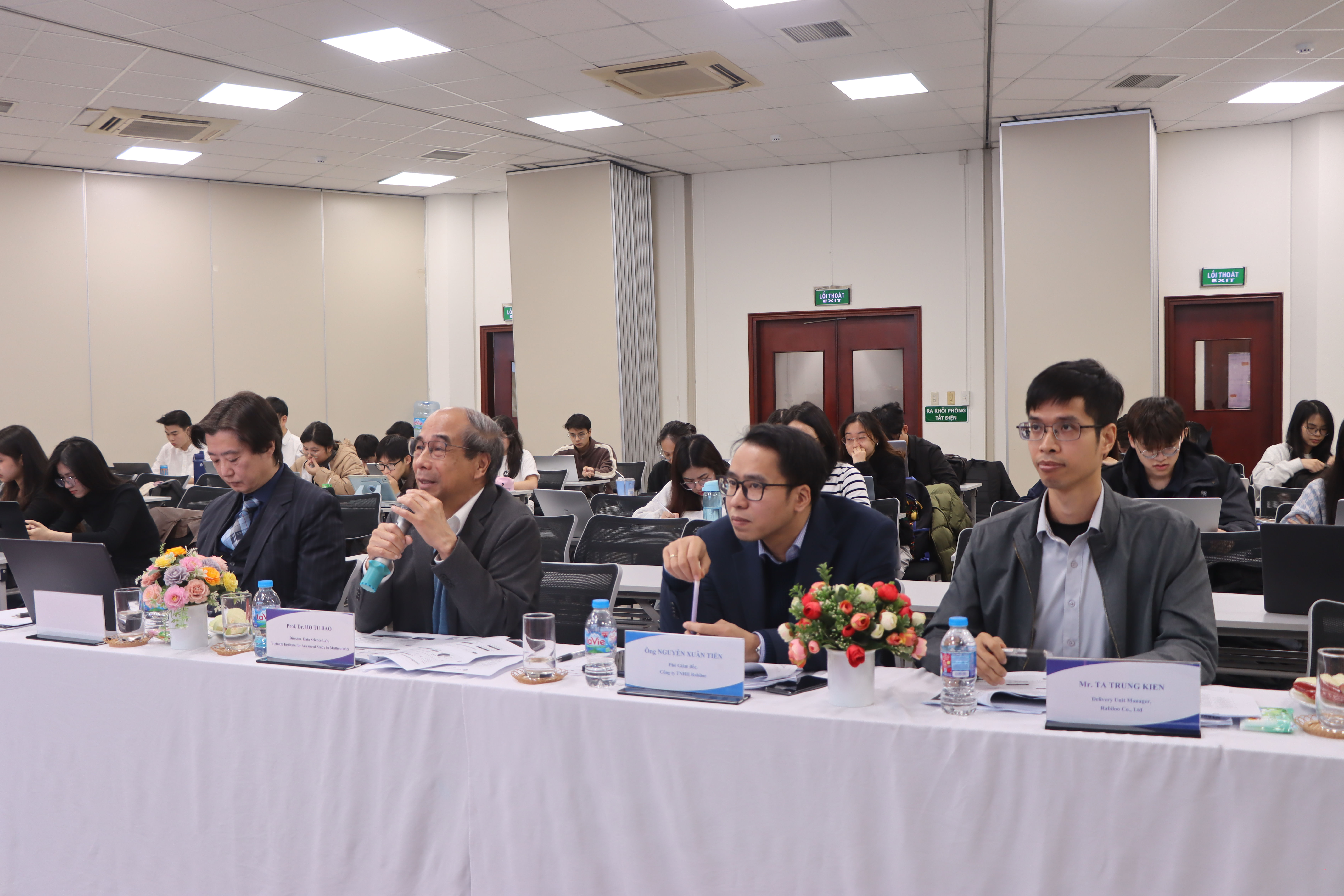 Thay mặt hội đồng giám khảo, GS Hồ Tú Bảo và GS Konosu đã có phần phát biểu tổng kết, nhấn mạnh rằng DBIZ2 là học phần then chốt giúp sinh viên hình thành tư duy hệ thống – một năng lực cốt lõi trong kinh doanh số và chuyển đổi số. Theo các giám khảo, nhiều nhóm đã thể hiện được khả năng nhìn nhận vấn đề không chỉ ở góc độ chức năng, mà còn ở mối liên kết giữa con người, quy trình và công nghệ, tạo nền tảng tốt để bước sang giai đoạn phát triển MVP ở DBIZ3.