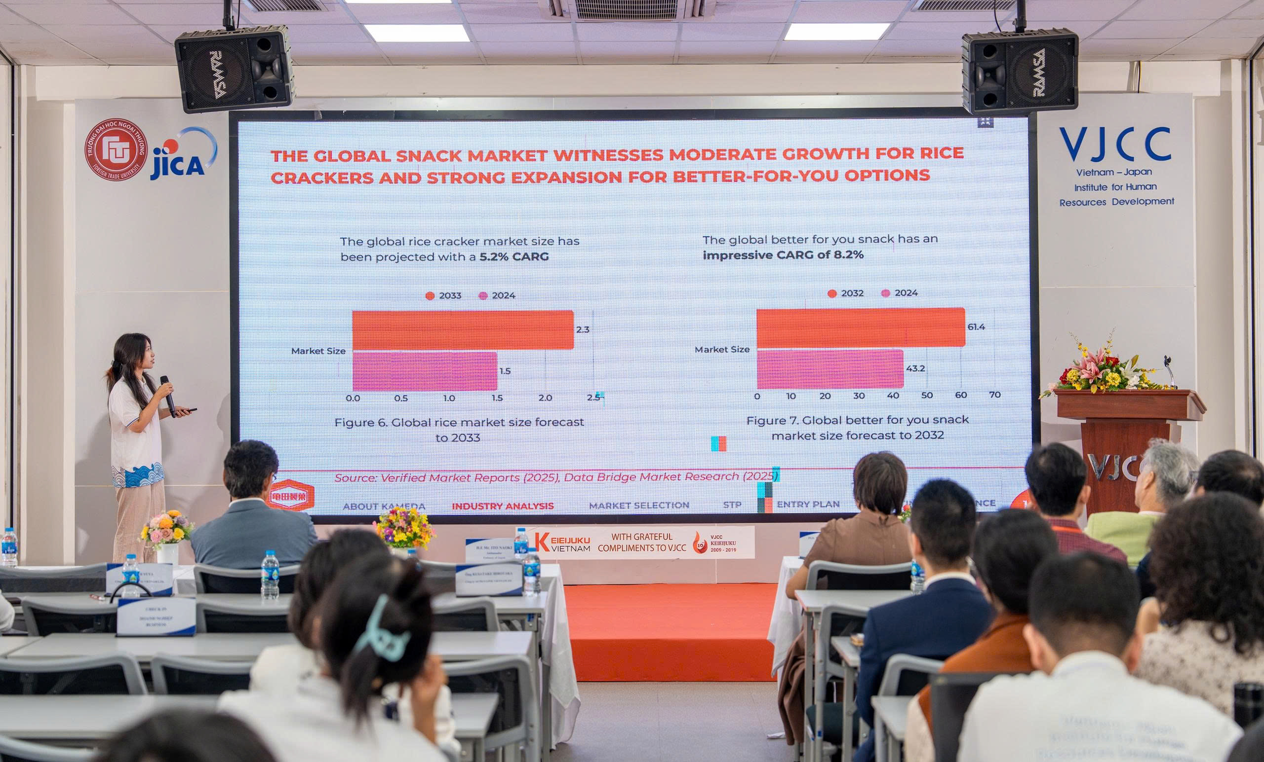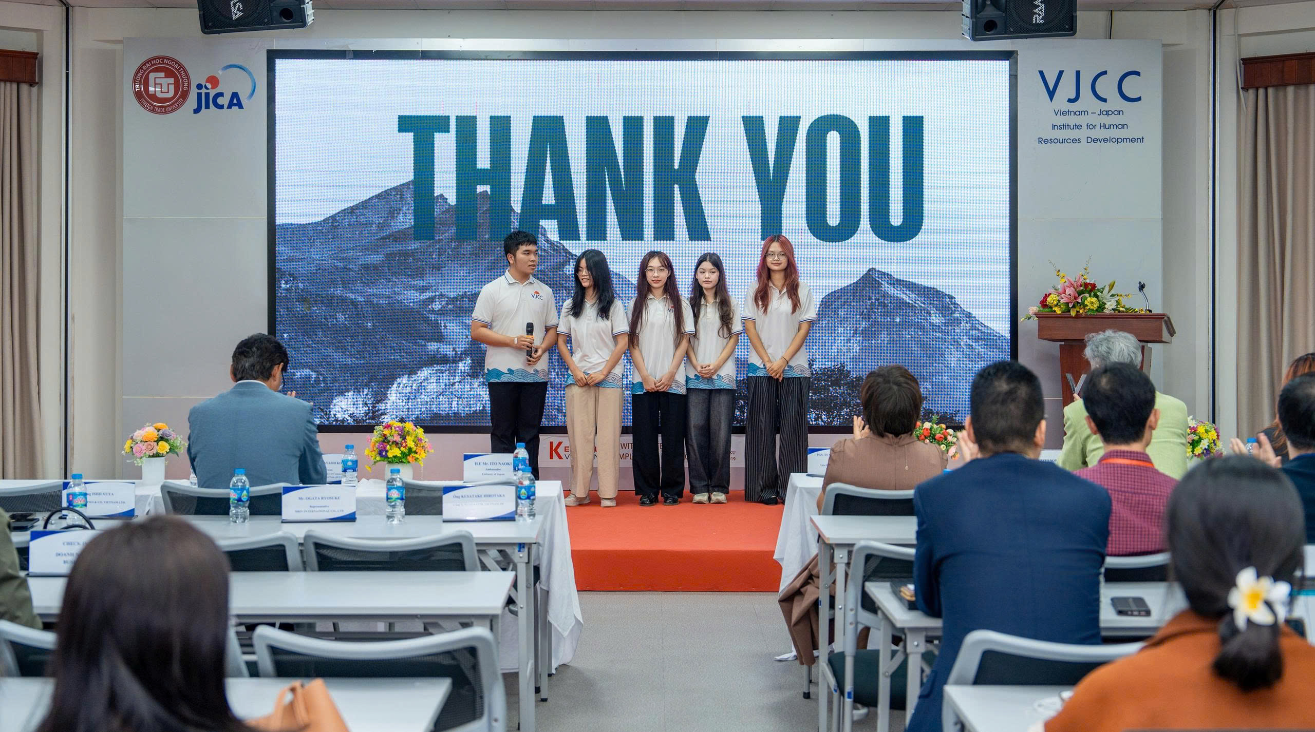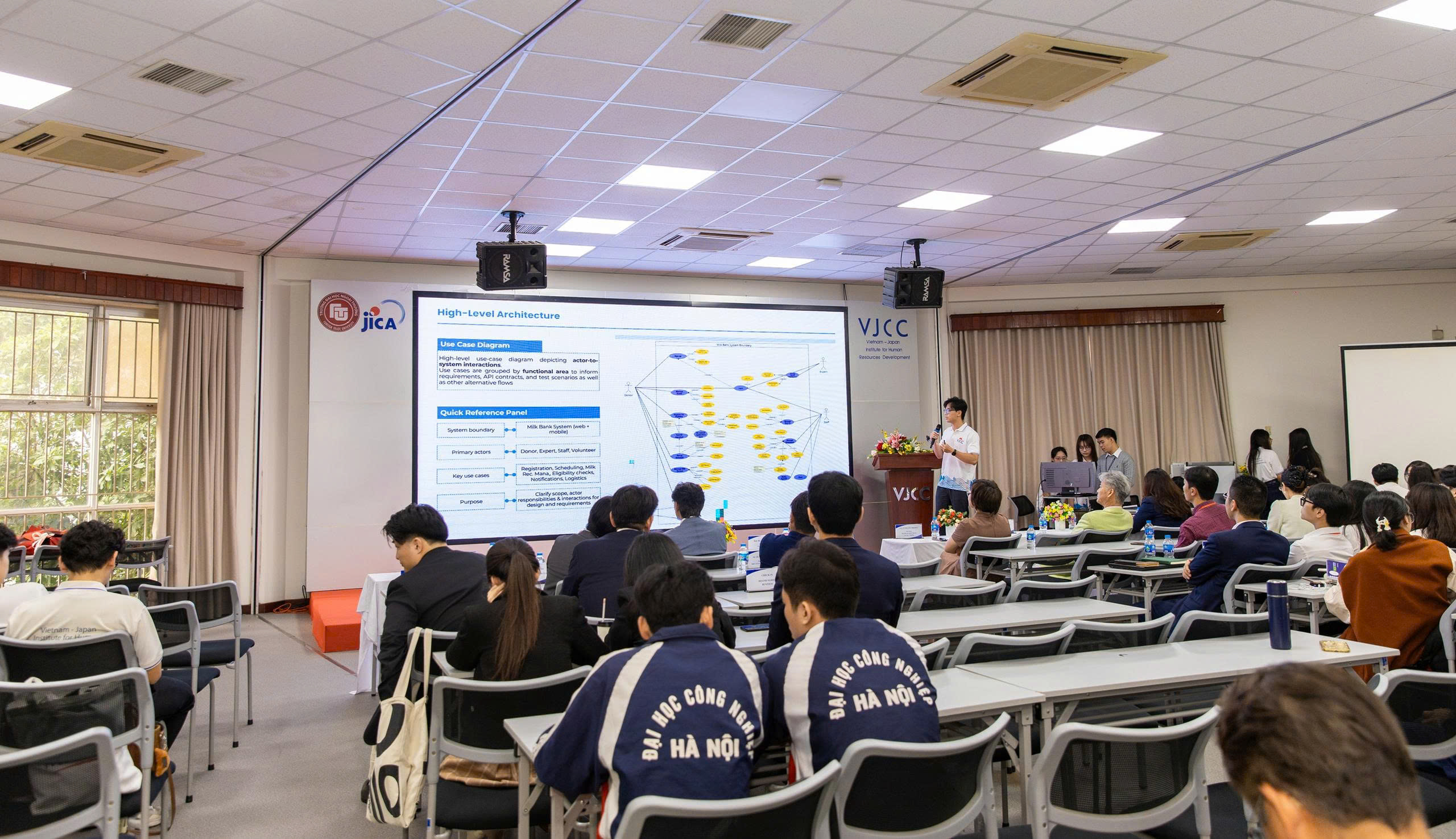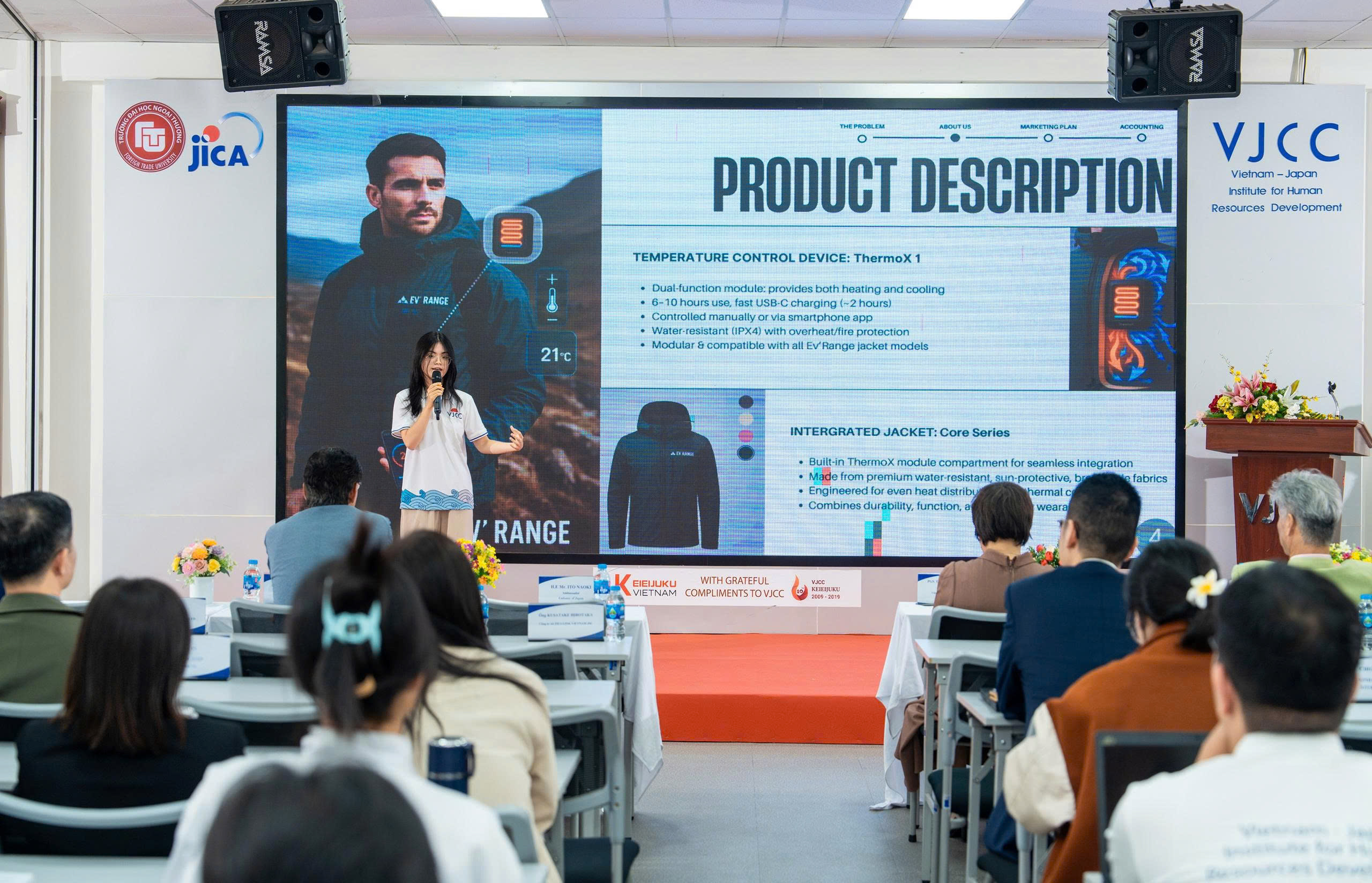 Trong phiên chiều 25/10/2025, 4 dự án kinh doanh của sinh viên Viện VJCC – Trường Đại học Ngoại thương đã vinh dự được lựa chọn làm dự án tiêu biểu, trình bày trước các giám đốc người Nhật Bản của các DN Nhật tại Việt Nam, các cán bộ quản lý và các sinh viên tham dự sự kiện. Đây là các Dự án được các sinh viên Viện VJCC thực hiện trong mô hình học “Học tập theo dự án – Project – based Learning” nằm trong khuôn khổ 2 chương trình đào tạo cử nhân các chuyên ngành “Kinh doanh quốc tế theo mô hình tiên tiến Nhật Bản” và “Kinh doanh số”.