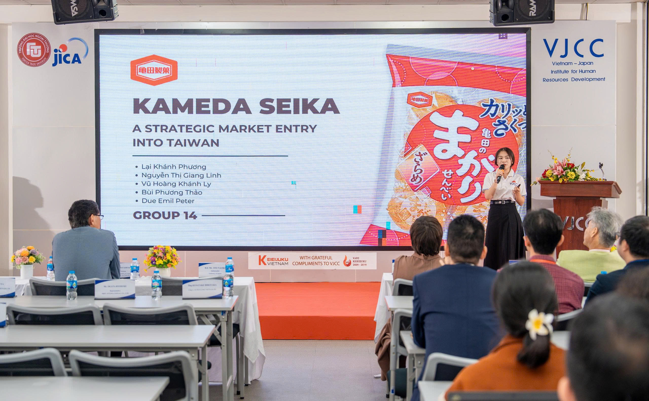 Với chiến lược thâm nhập thị trường Đài Loan độc đáo và mới lạ cho công ty Bánh gạo Nhật Bản Kameda Seika, Nhóm 14 đã thể hiện sự xuất sắc của mình và dành giải nhất trong cuộc thi Lập kế hoạch kinh doanh Vbiz 2, Thay vì xuất phát từ phân tích thị trường mục tiêu như các nhóm khác, nhóm sinh viên đã khởi đầu từ những điểm mạnh của sản phẩm bánh gạo Kameda Seika, từ đó tìm ra thị trường cũng như phân khúc khách hàng phù hợp với những sản phẩm của mình.