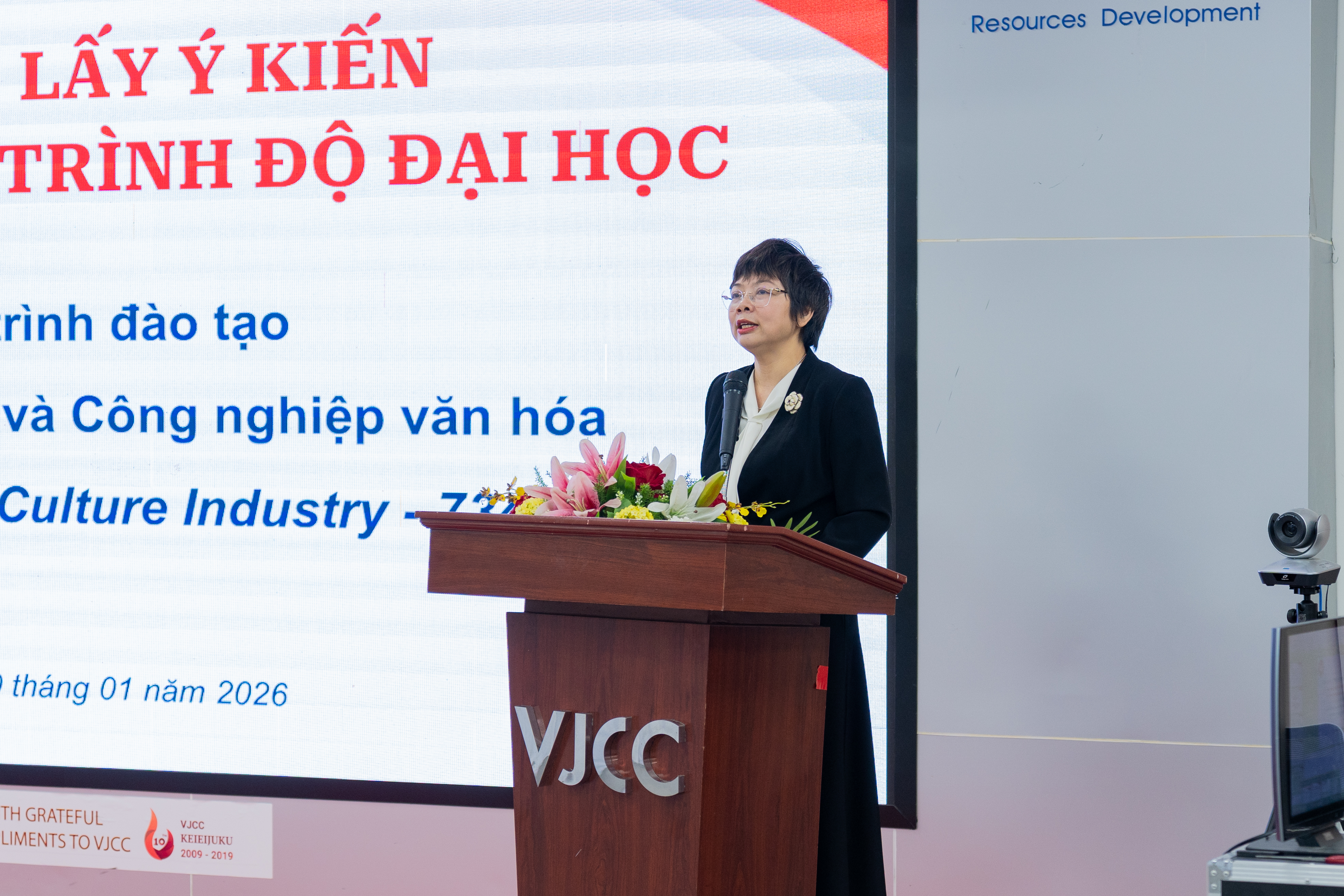 Sáng ngày 30/01/2026, Trường Đại học Ngoại thương phối hợp Viện Phát triển Nguồn nhân lực Việt Nam - Nhật Bản (VJCC) tổ chức Hội thảo lấy ý kiến các bên liên quan về Đề án xây dựng Chương trình Đào tạo (CTĐT) Trình độ Đại học về Kinh doanh Sáng tạo và Công nghiệp Văn hóa (Creative Business and Cultural Industry).