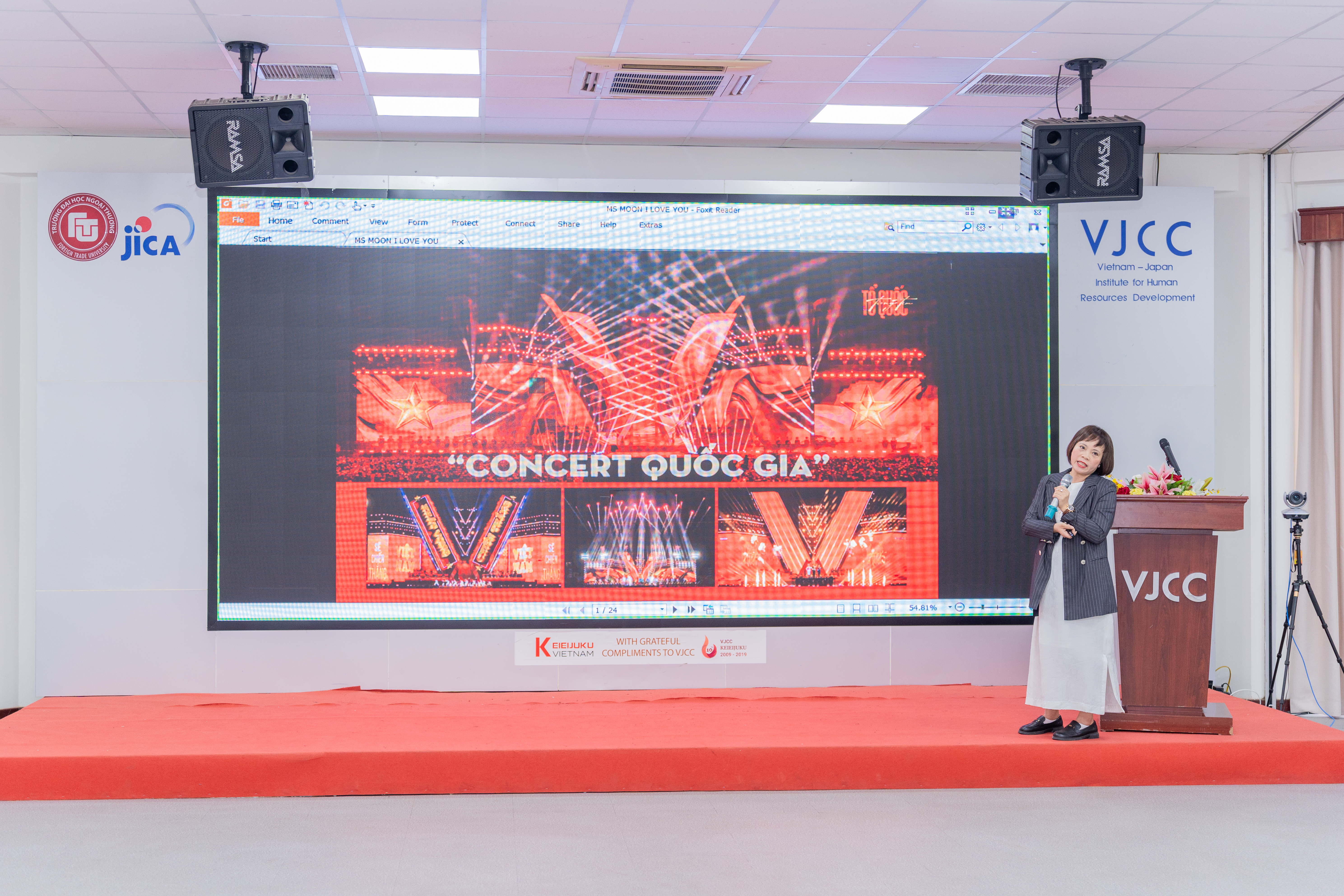 PGS, TS Nguyễn Thị Hiền - Viện trưởng Viện phát triển nguồn nhân lực Việt Nam - Nhật Bản (VJCC) phát biểu khai mạc và giới thiệu về CTĐT