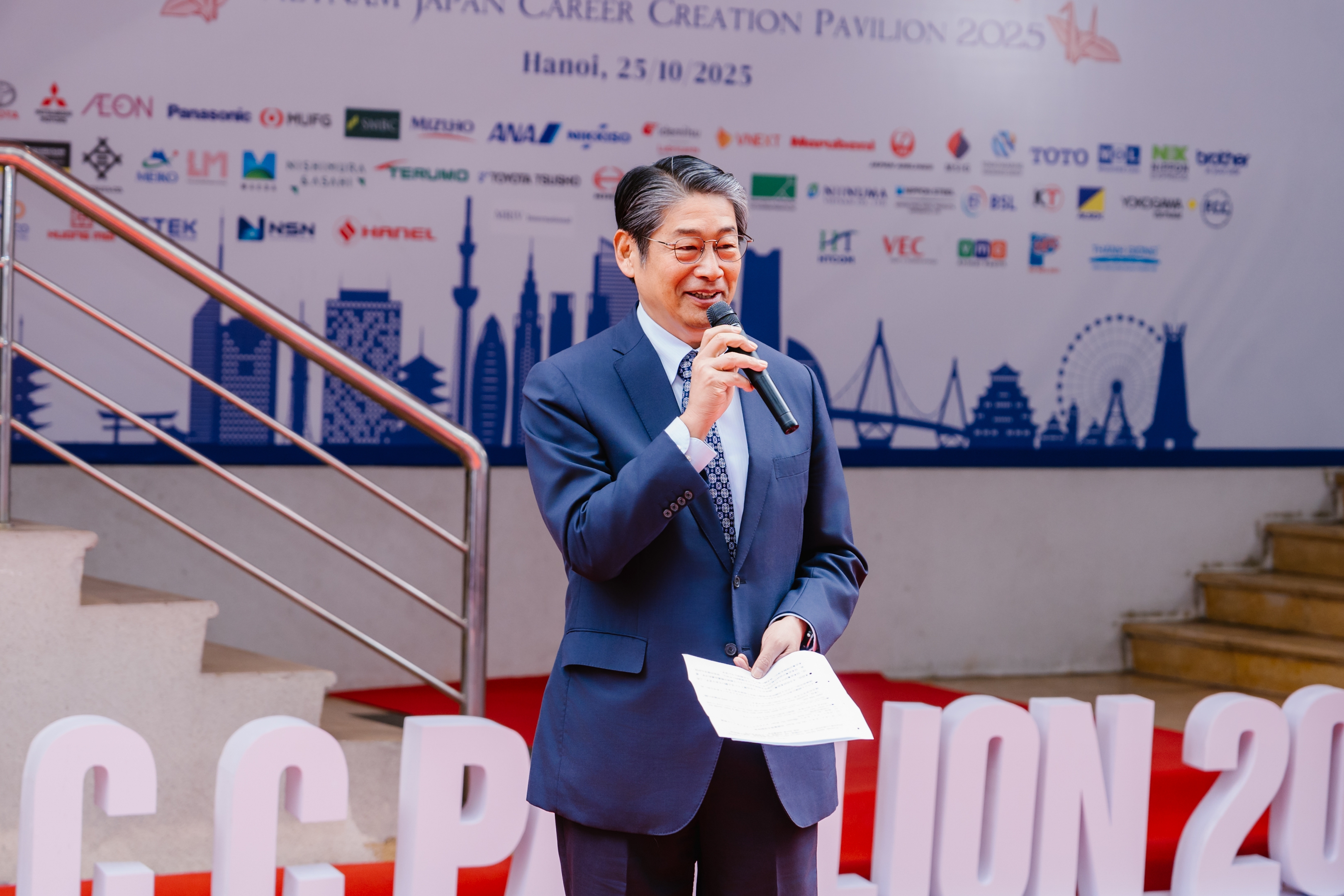 Đại sứ Ito Naoki – Đại sứ Đặc mệnh Toàn quyền, Đại sứ quán Nhật Bản tại Việt Nam phát biểu chào mừng Ngày hội Kết nối Việc làm & Phát triển Sự nghiệp Việt Nam – Nhật Bản “V.J.C.C Pavilion 2025”