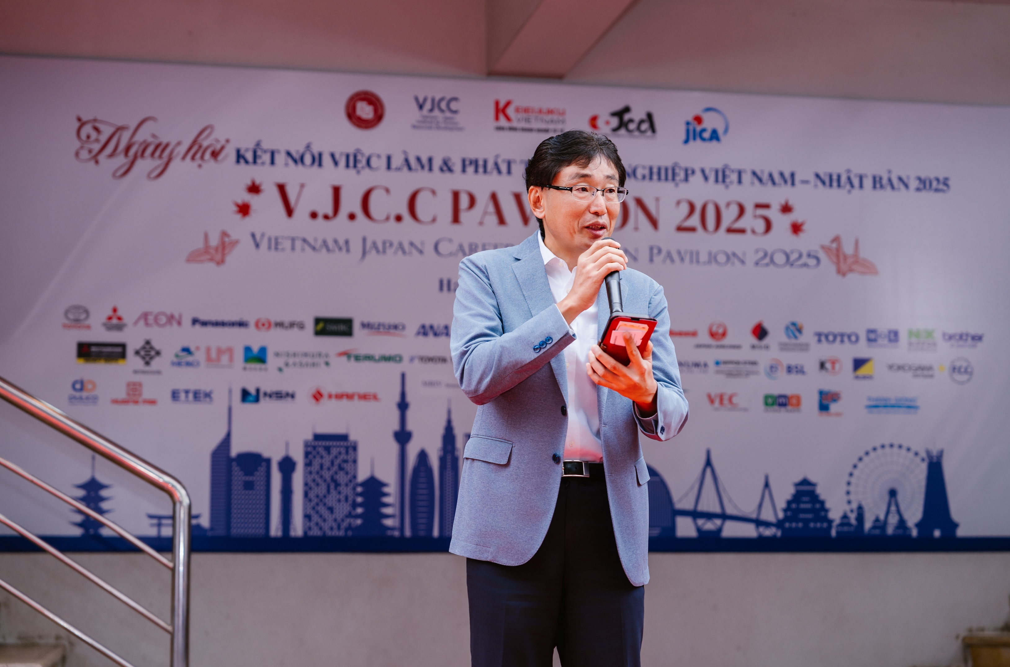Phát biểu chào mừng tại Ngày hội Kết nối Việc làm & Phát triển Sự nghiệp Việt Nam – Nhật Bản “V.J.C.C Pavilion 2025”, Đại sứ Ito Naoki – Đại sứ Đặc mệnh Toàn quyền, Đại sứ quán Nhật Bản tại Việt Nam đã gửi lời cảm ơn tới Viện VJCC, Trường Đại học Ngoại thương, Hiệp hội doanh nghiệp Nhật Bản tại Việt Nam (JCCI) và các bên liên quan đã nỗ lực đóng góp cho thành công của sự kiện. Với sự tham dự của 43 doanh nghiệp Nhật Bản, sự kiện thể hiện rõ sự quan tâm và kỳ vọng của doanh nghiệp Nhật đối với nguồn nhân lực Việt Nam. Đề cập tới sự lãnh đạo của Tổng bí thư Tô Lâm và sự kiện thành lập chính quyền mới của Tân Thủ tướng Sanae Takaichi, Đại sứ khẳng định Nhật Bản tiếp tục coi Việt Nam là đối tác chiến lược không thể thiếu, cùng thúc đẩy tăng trưởng và hợp tác kinh tế song phương. Ông cũng kỳ vọng những chia sẻ của các cựu sinh viên Đại học Ngoại thương đang làm việc tại doanh nghiệp Nhật sẽ là nguồn cảm hứng cho sinh viên tham dự. Cuối cùng, Đại sứ cũng gửi lời chúc sự kiện sẽ diễn ra thành công tốt đẹp và bày tỏ mong muốn tình hữu nghị Việt Nam – Nhật Bản ngày càng bền chặt.