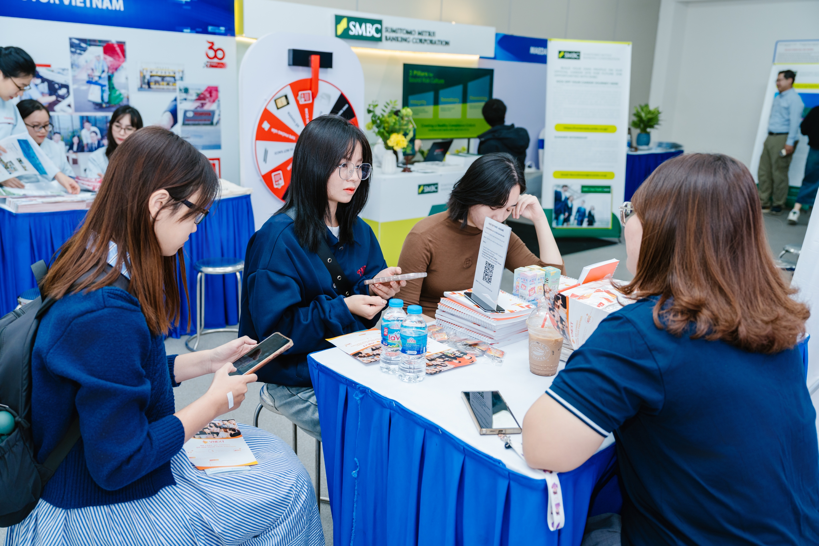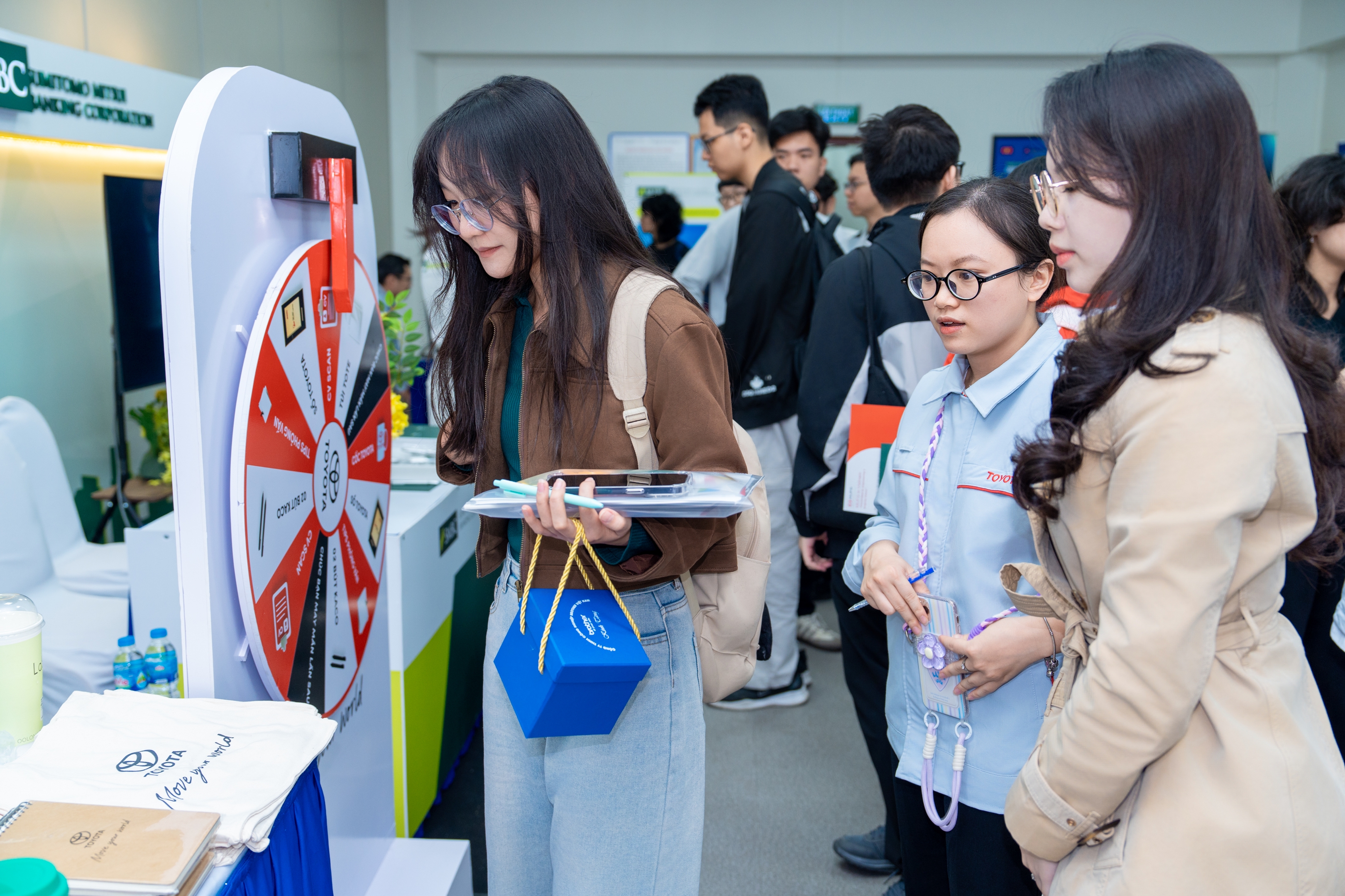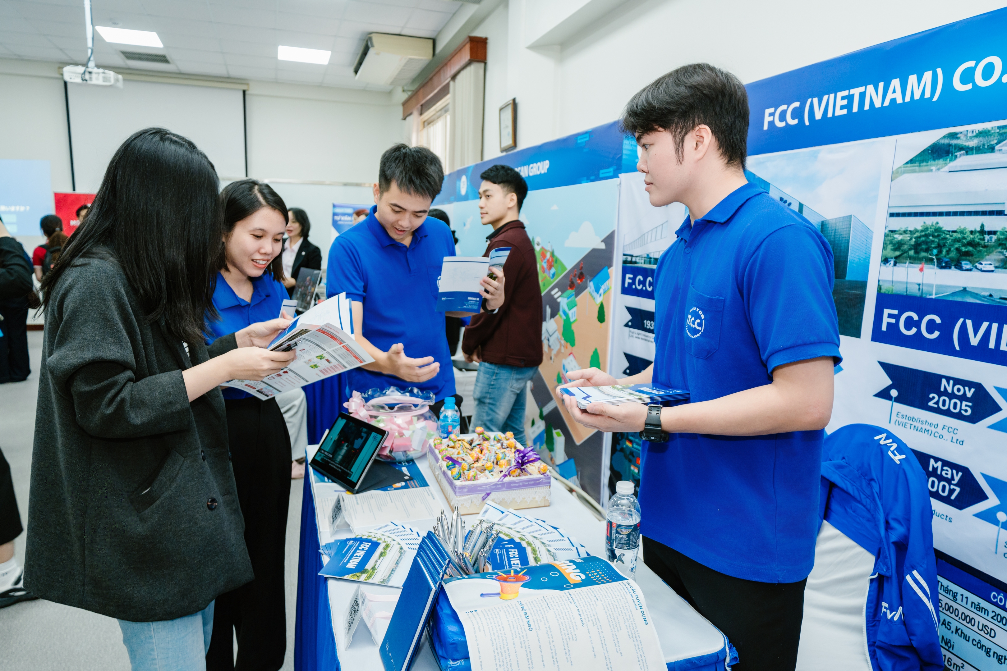 Các hoạt động kết nối, trao đổi giữa sinh viên và doanh nghiệp tại các gian hàng của các công ty tham dự