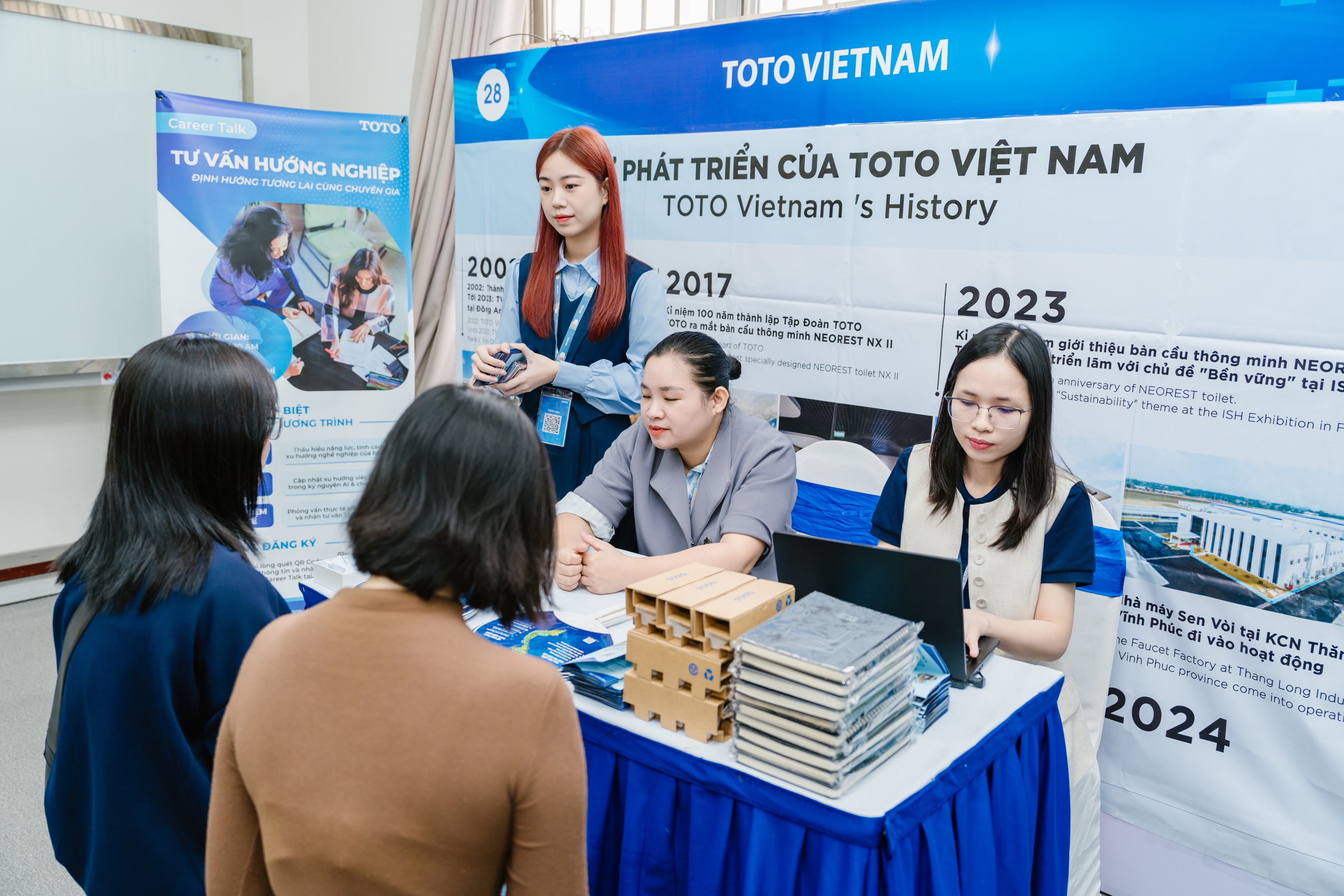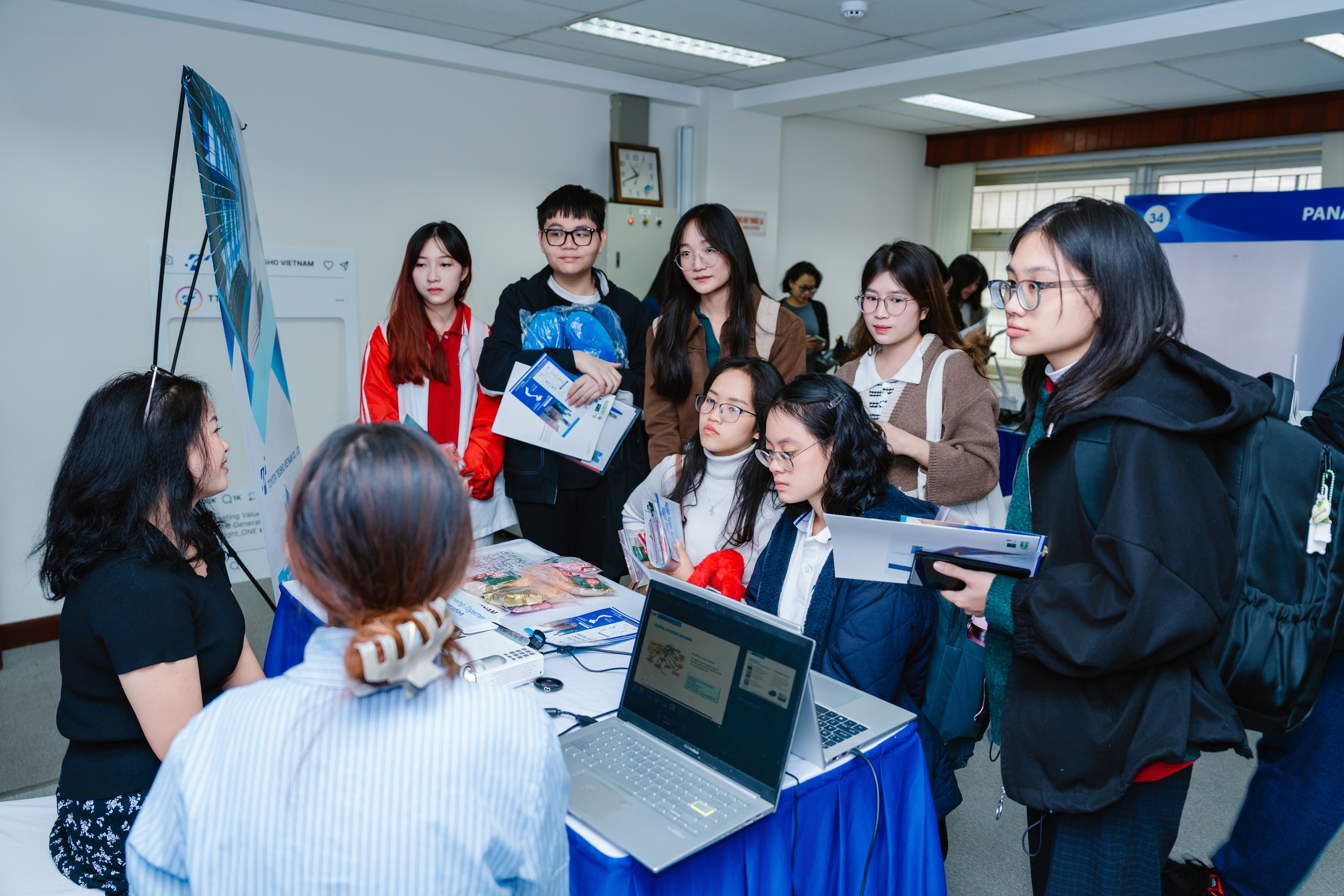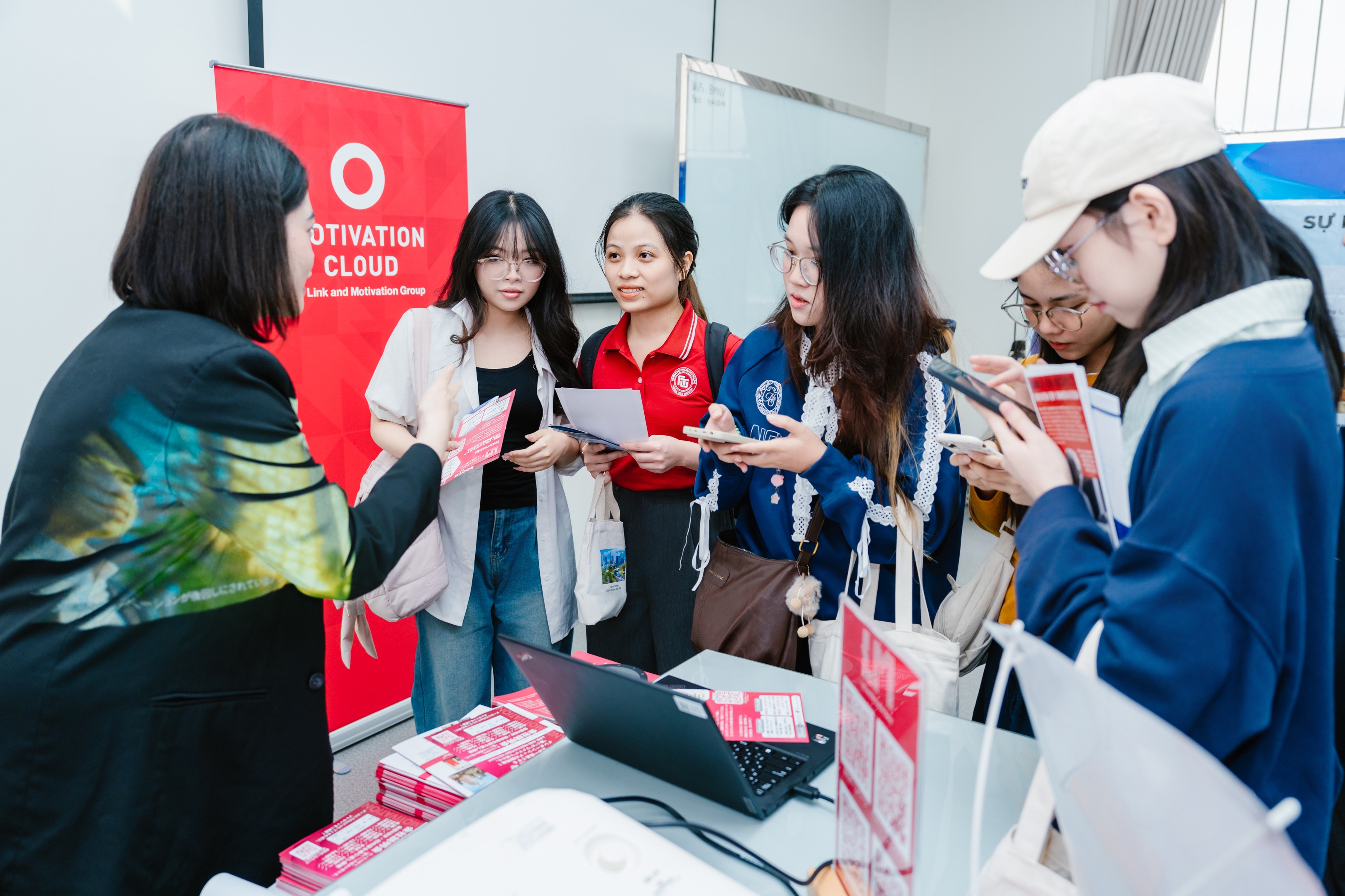 Các hoạt động kết nối, trao đổi giữa sinh viên và doanh nghiệp tại các gian hàng của các công ty tham dự