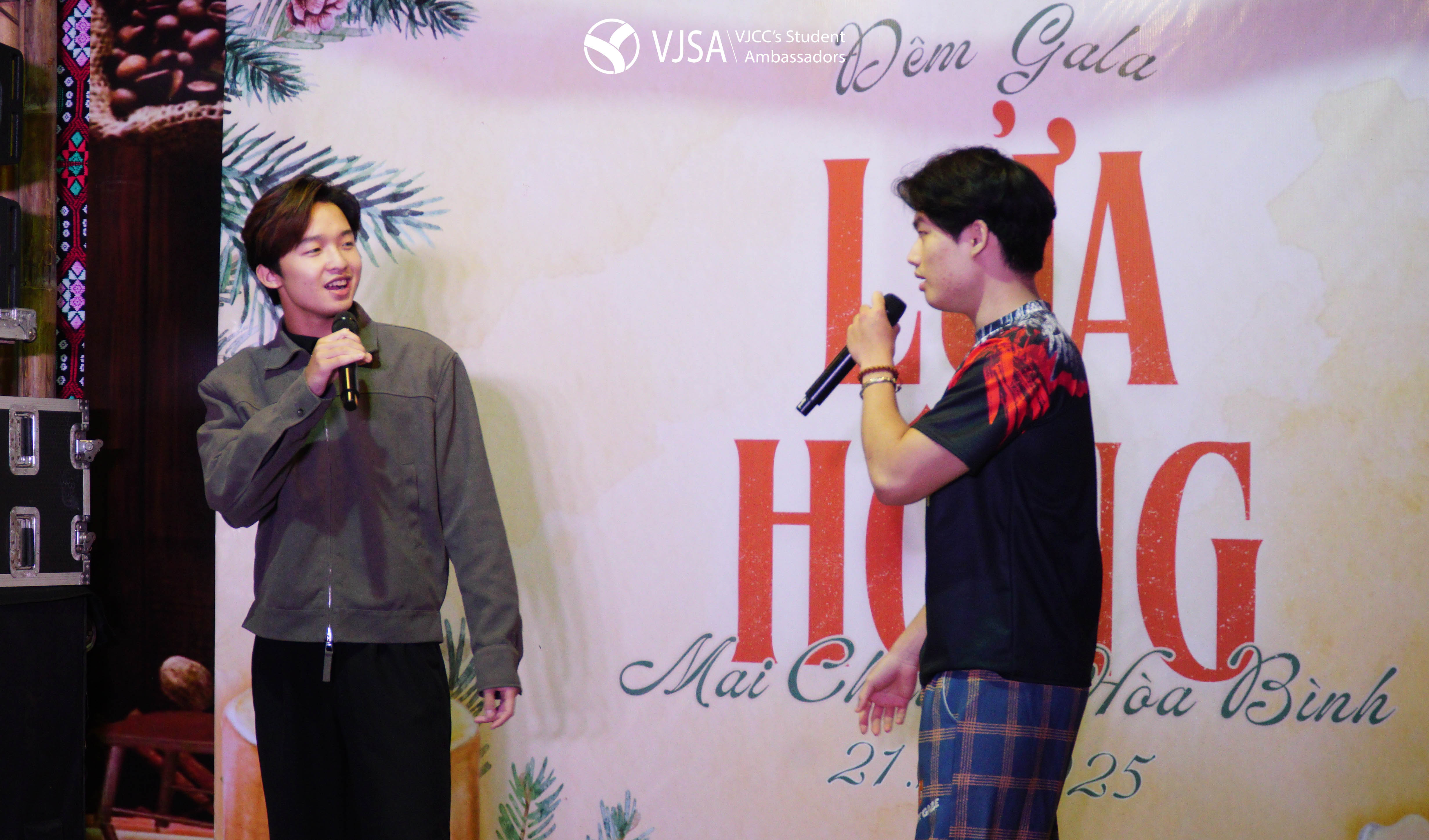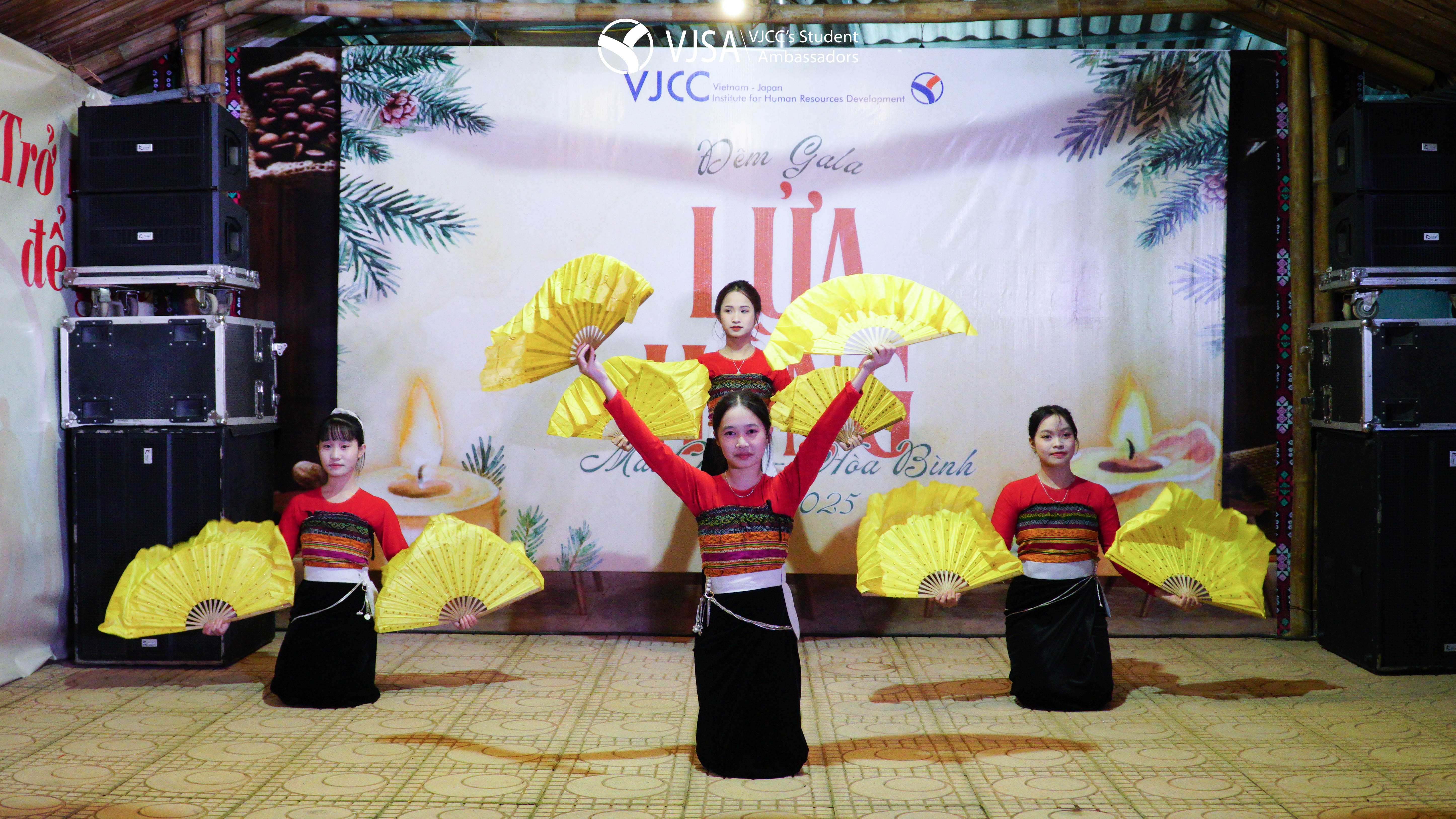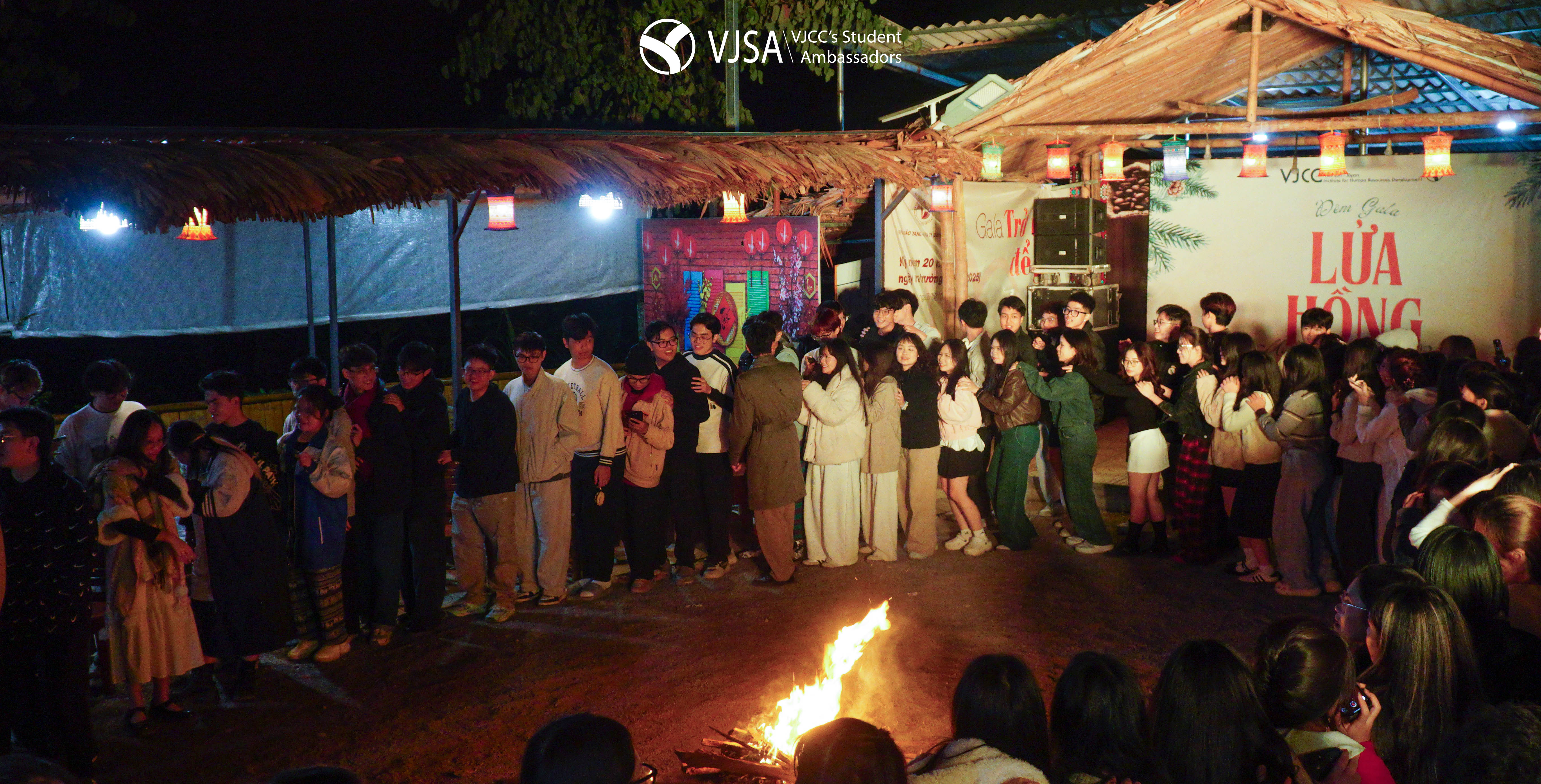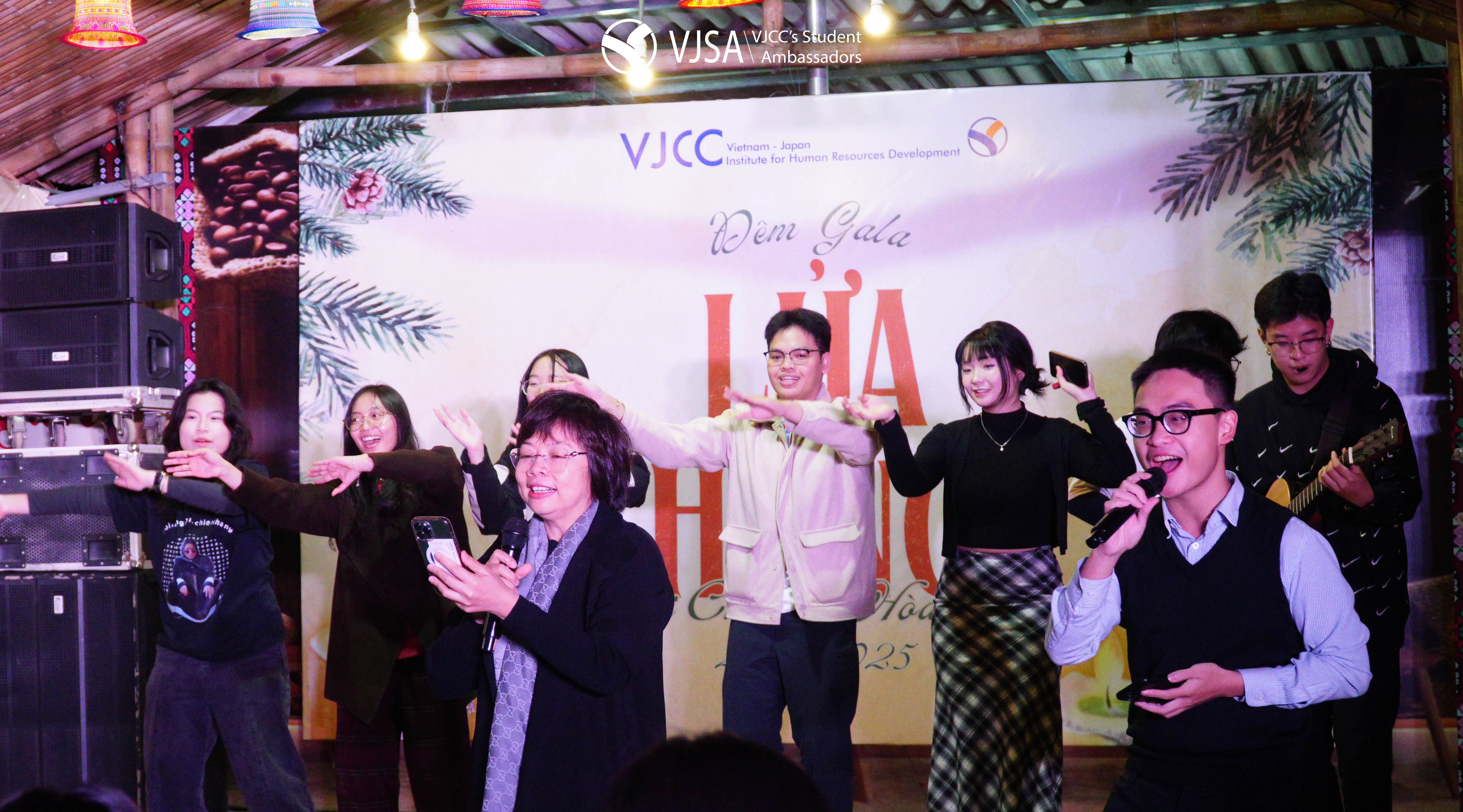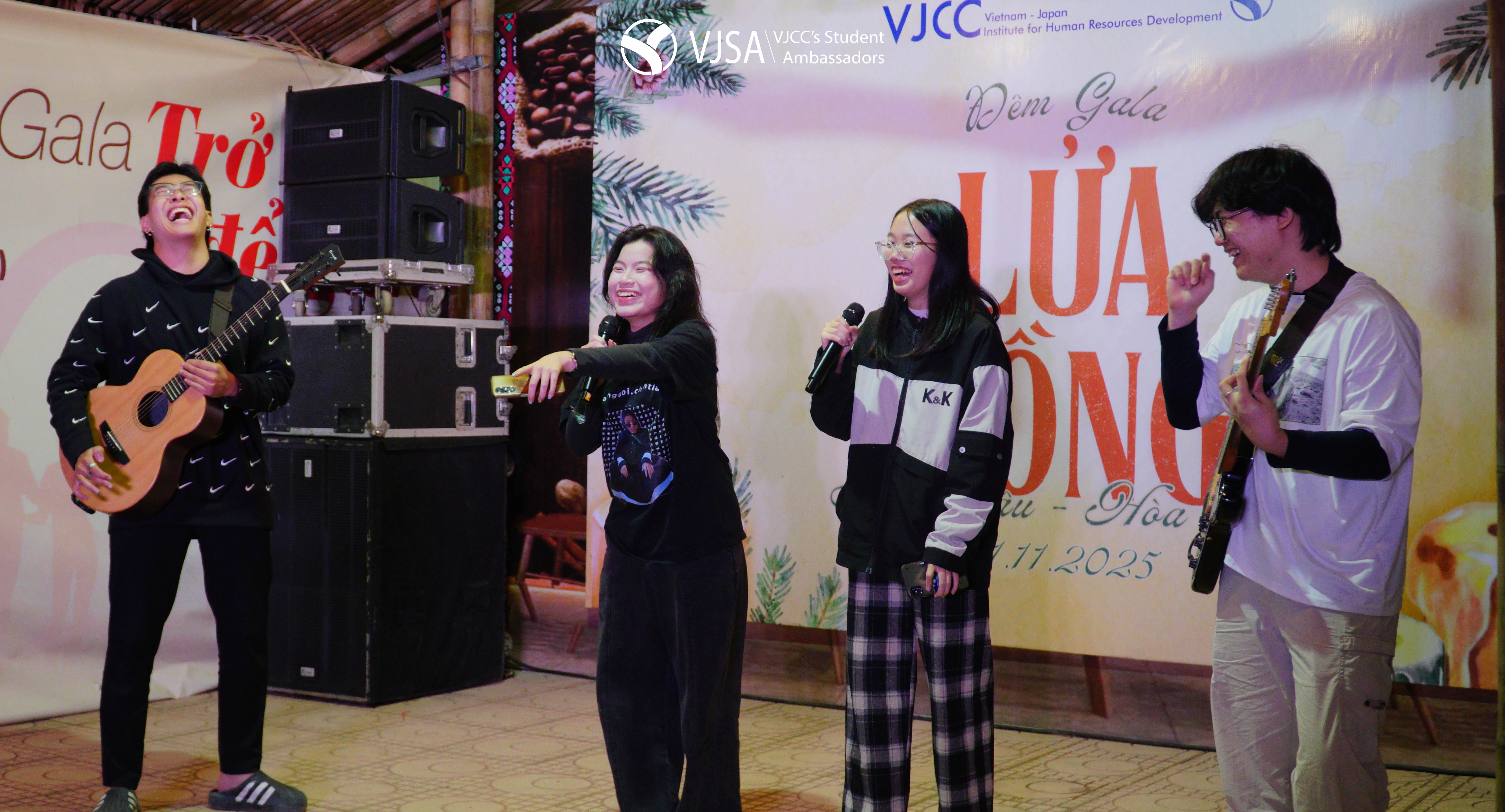 Những khoảnh khắc lắng đọng nhất của chuyến đi trong Đêm GALA Lửa Hồng khi tập thể thầy cô và sinh viên Viện VJCC thoả sức thể hiện tài năng của mình với những tiết mục ca hát, nhảy múa đa dạng và đầy màu sắc. Không dừng lại ở đó, các em sinh viên còn được trải nghiệm không khí lễ hội đậm chất làng bản với những giây phút quây quần bên lửa trại - đặc trưng của đồng bào miền Tây Bắc.